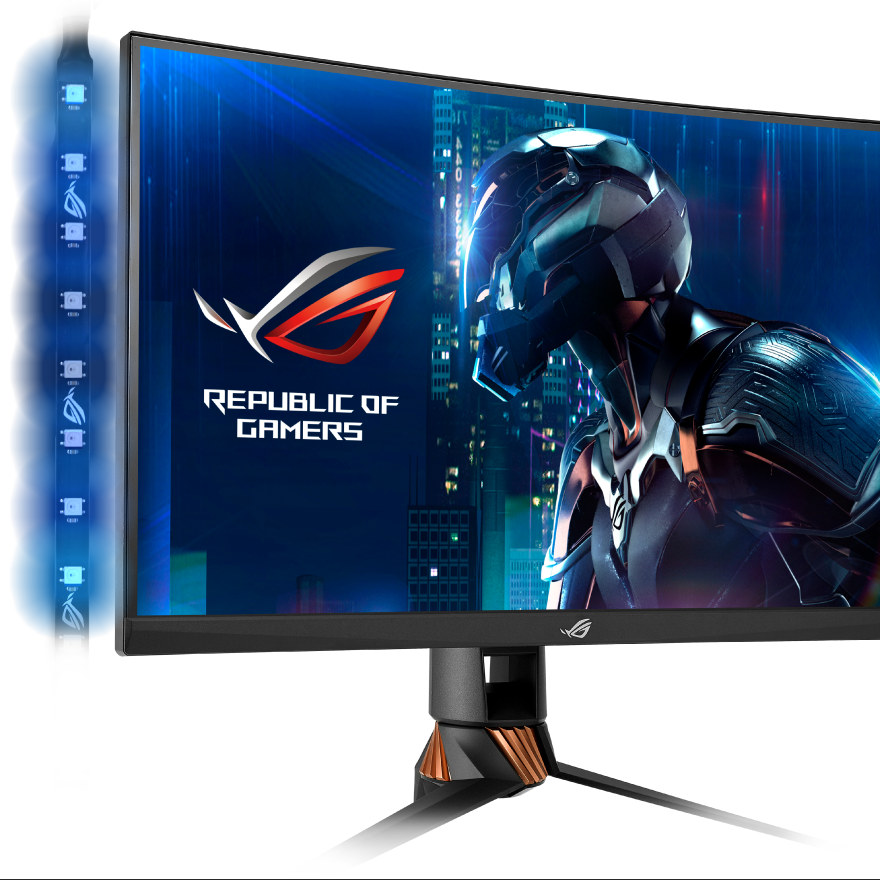 - ROG Halo: Enables ambient RGB synchronization to reflect in-game action when LED strips are mounted behind the monitor