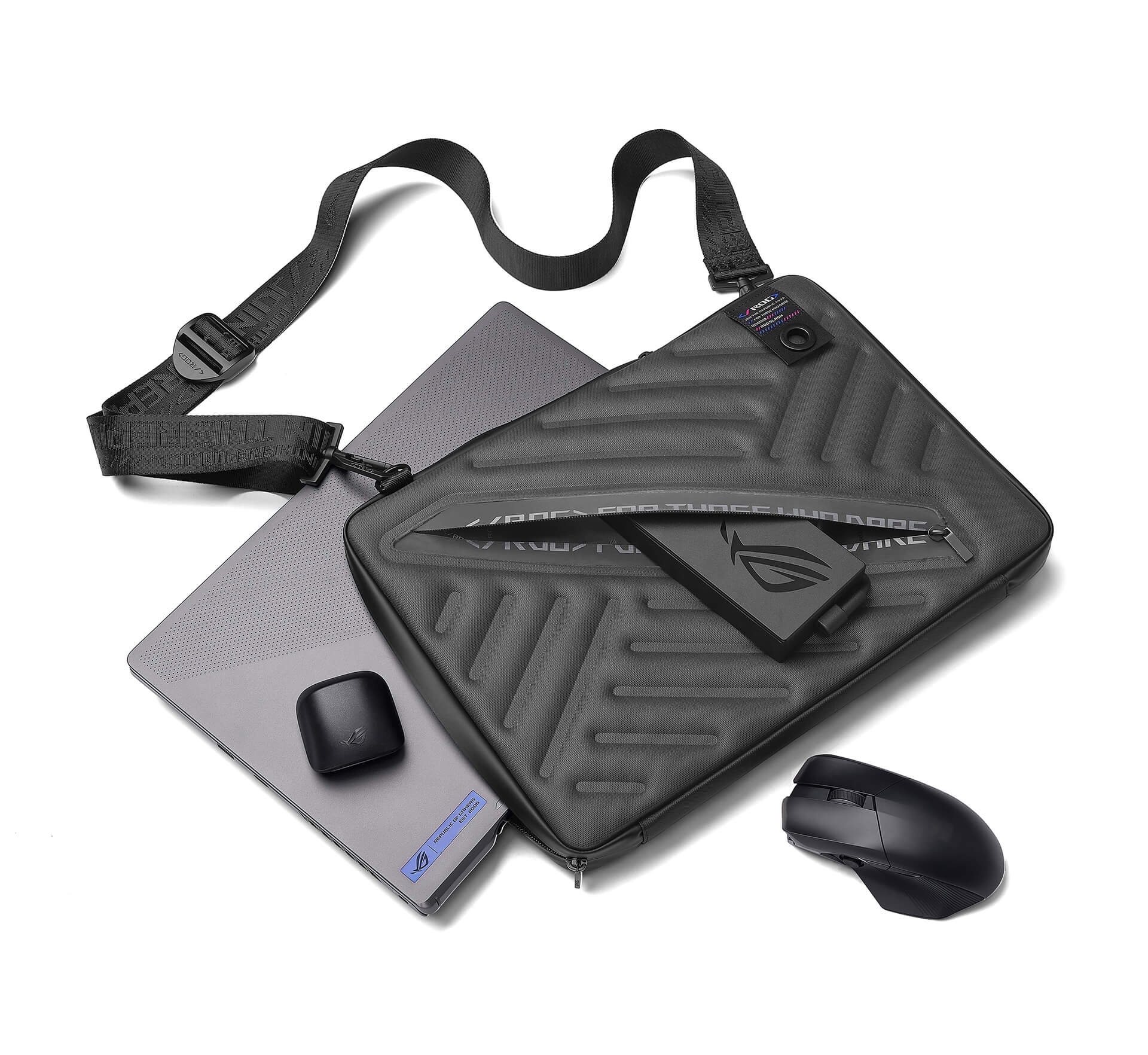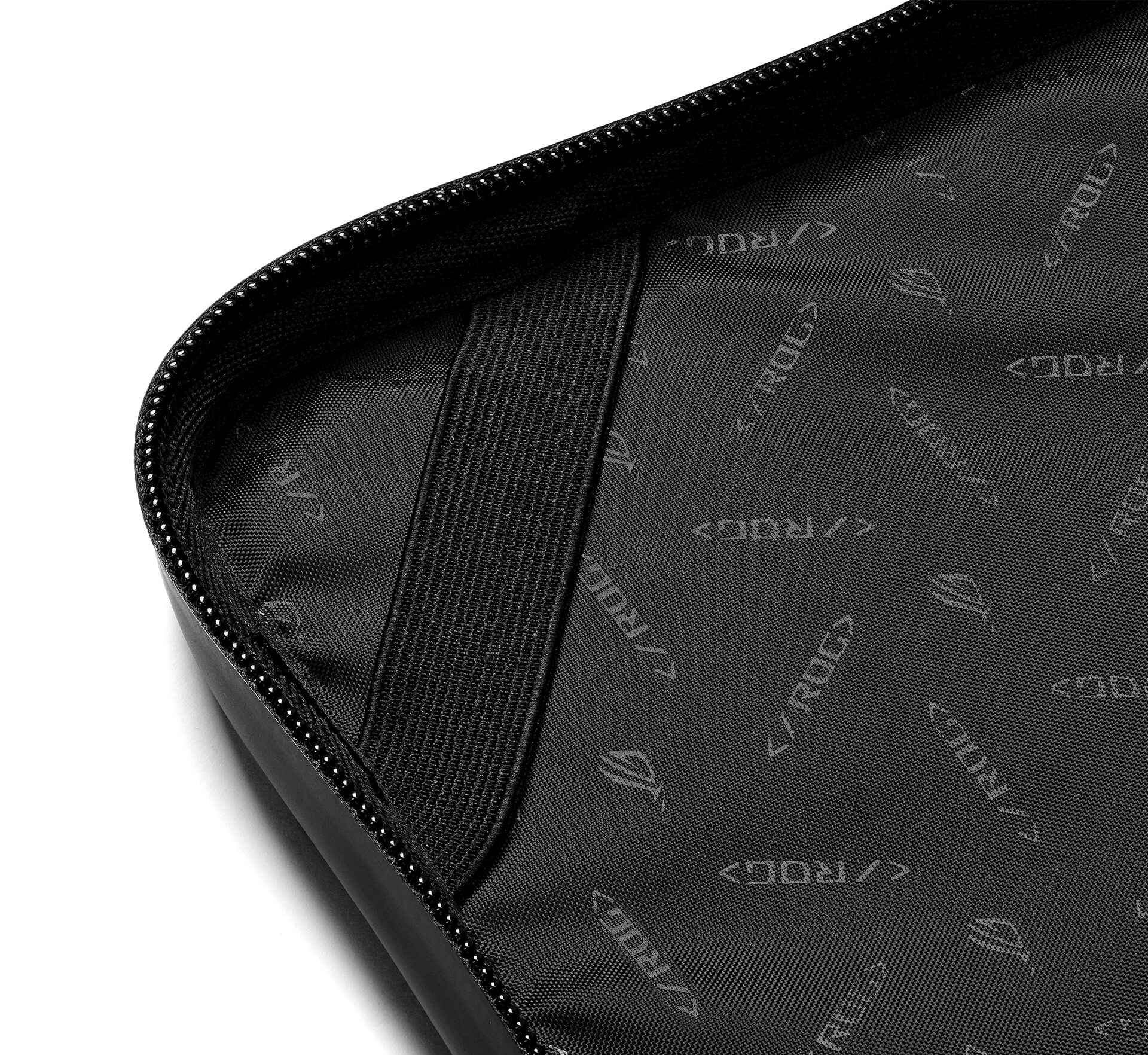 Here at ROG, we love laptops. That means our ROG SLASH Protective Laptop Bag was designed from the ground up to keep your machine safe from all of the normal bumps and scrapes of everyday life. Able to accommodate a 15.6” machine, this external hard case with EVA padded material for shock absorption and internal stability straps keeps your computer snug while on the move. When traveling, the bag has a convenient built-in luggage passthrough, or can be worn over the shoulder with an included carrying strap. If you love ROG laptops, this is the bag for you.