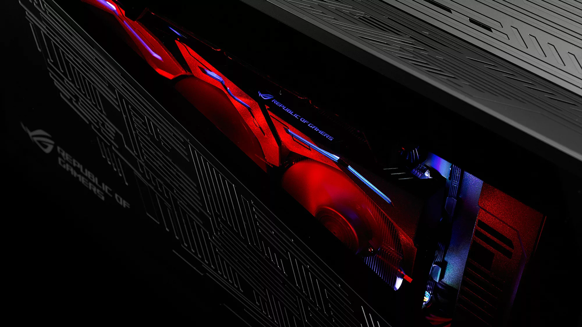 The centerpiece of the station is an ROG-themed plama tube, it gives you a sense of the power and futuristic tech within. Don't be surprised if you find yourself staring at it like a hypnotized mosquito. The window on the side reveals the graphics card and all the additional lights surrounding it, through software you can synchronize the RGB lighting effects the way you like it. All the latest ROG Strix graphics cards support Aura Sync and GPU Tweak II to help you get the best performance possible.