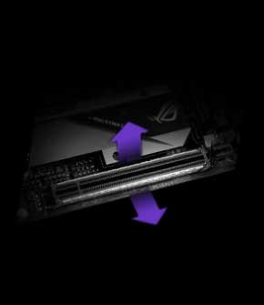 ROG Strix Z390-I Gaming features a unique memory-trace design that supports up to 32GB per channel for a total memory capacity of 64GB. With double-capacity UDIMM modules, ROG Strix Z390-I Gaming delivers four-DIMM memory bandwidth in a compact, dual-DIMM design.