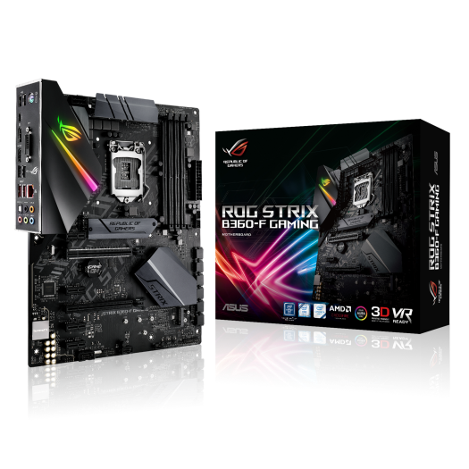 Intel B360 ATX gaming motherboard with Aura Sync RGB LED lighting, pre-mounted I/O shield, dual M.2, onboard M.2 heatsink, SATA 6Gbps and USB 3.1 Gen 2.