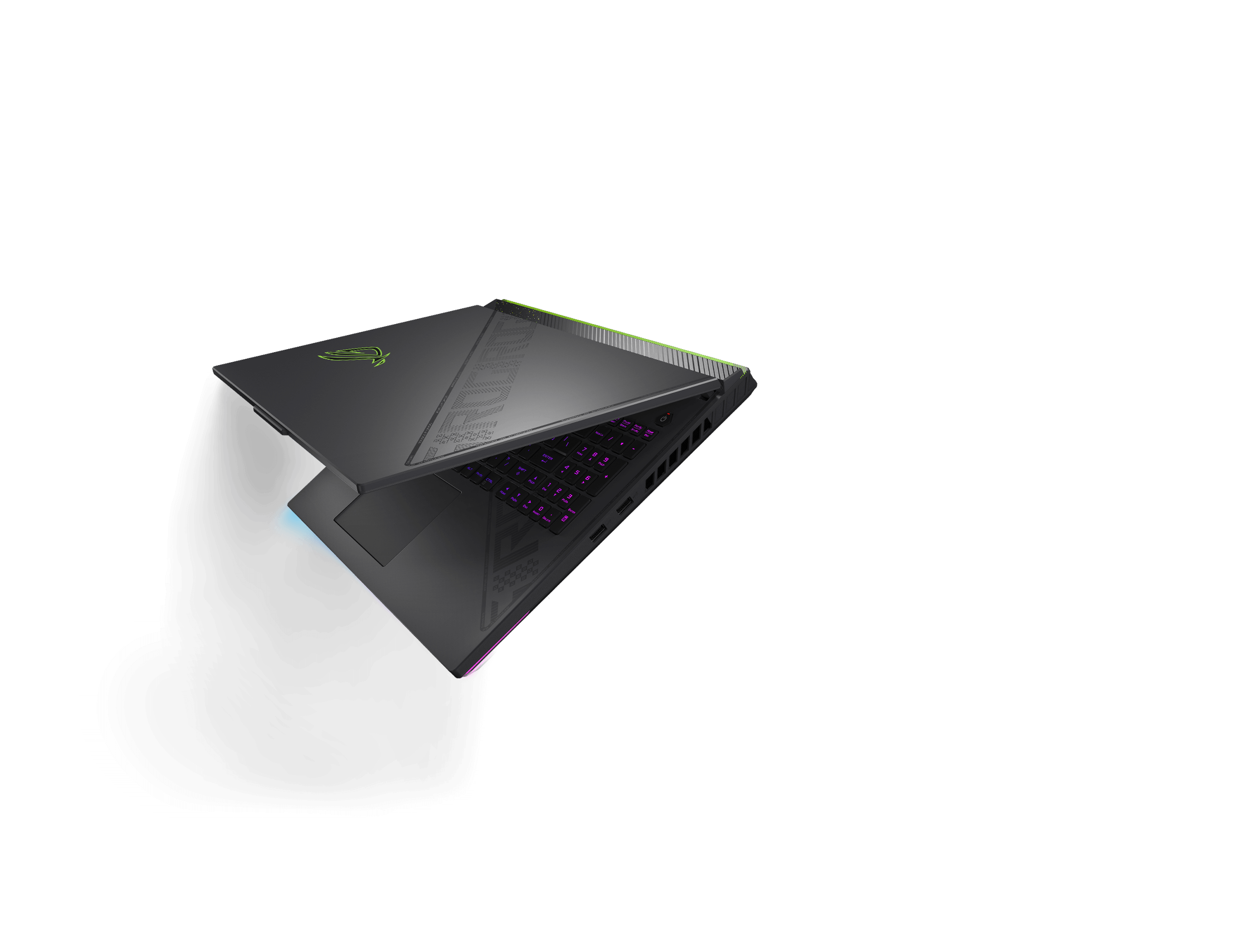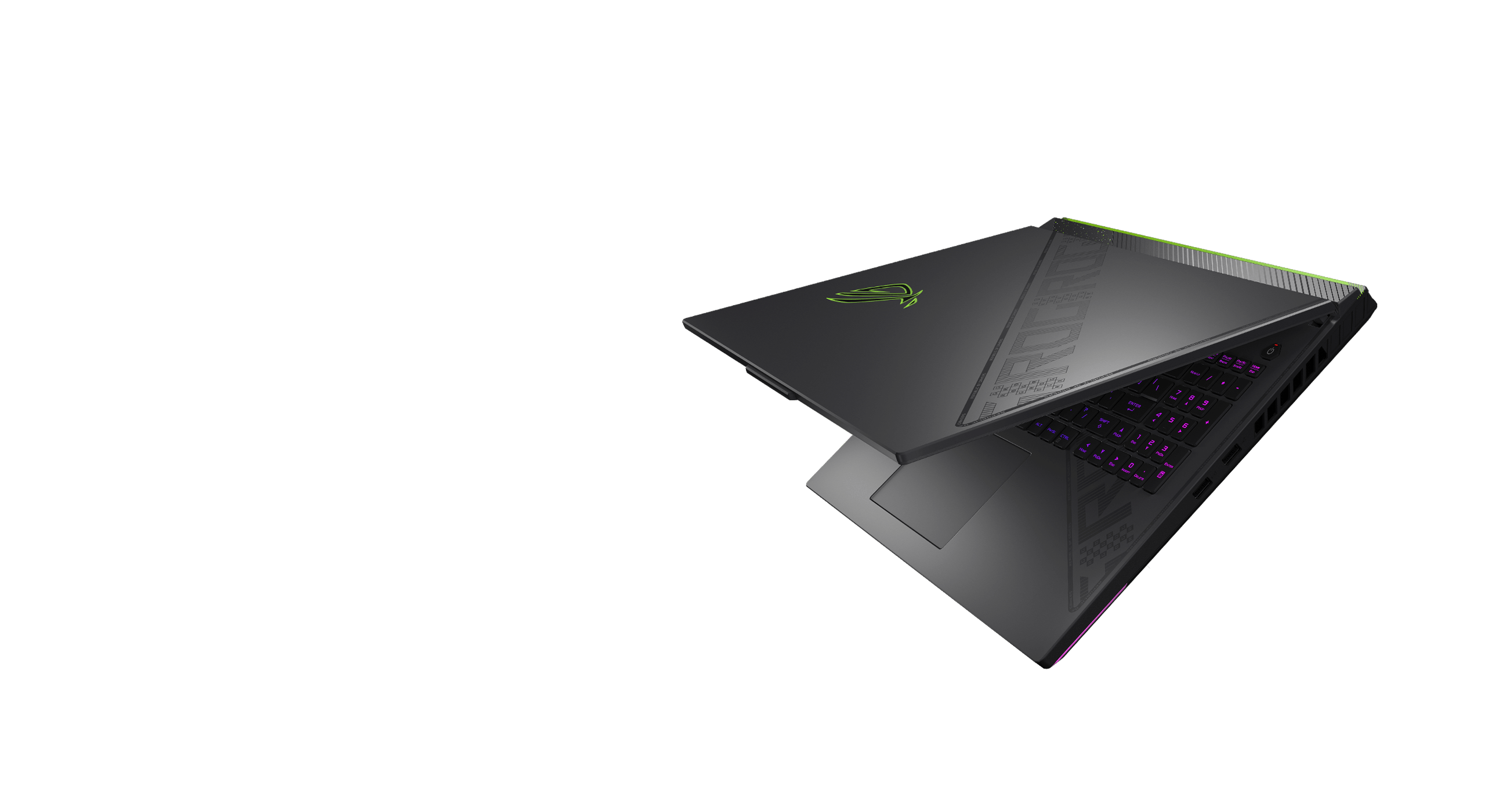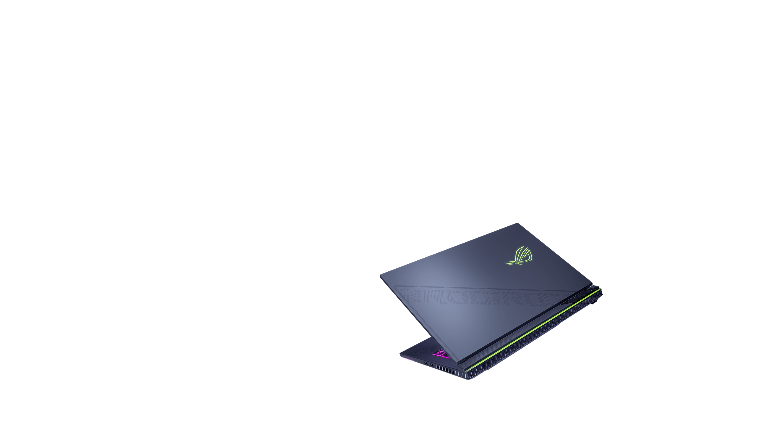 Thoughtful details set this laptop apart from the competition. Our 360° design philosophy puts subtle but distinctive elements across every part of the machine. The dot matrix design splashed across the lid cuts down to meet cross-hatched vents beneath the base. An expansive rubberized grip holds the laptop firmly in place and makes it easier to carry. Typographic elements around the trim subtly show off your ROG pride.