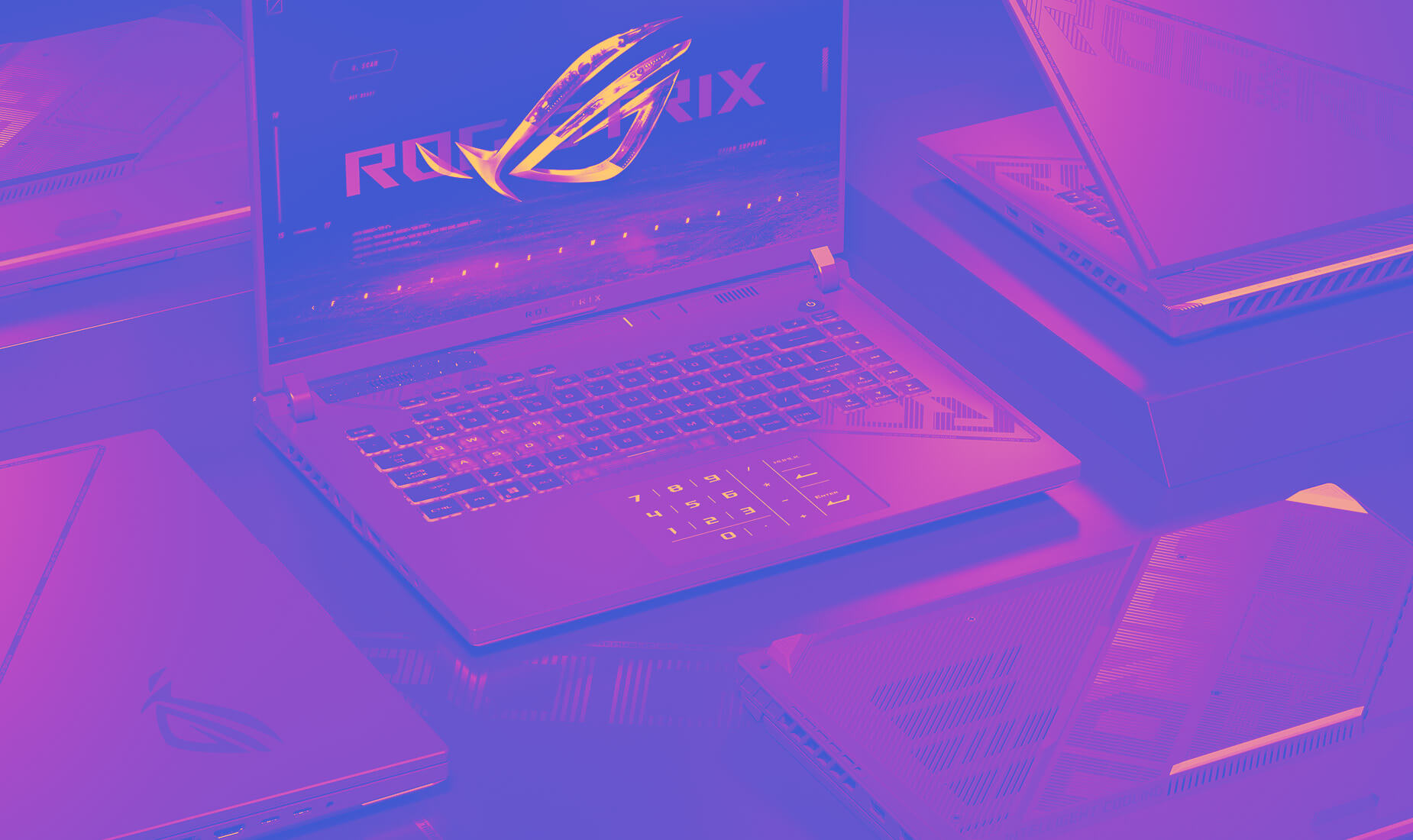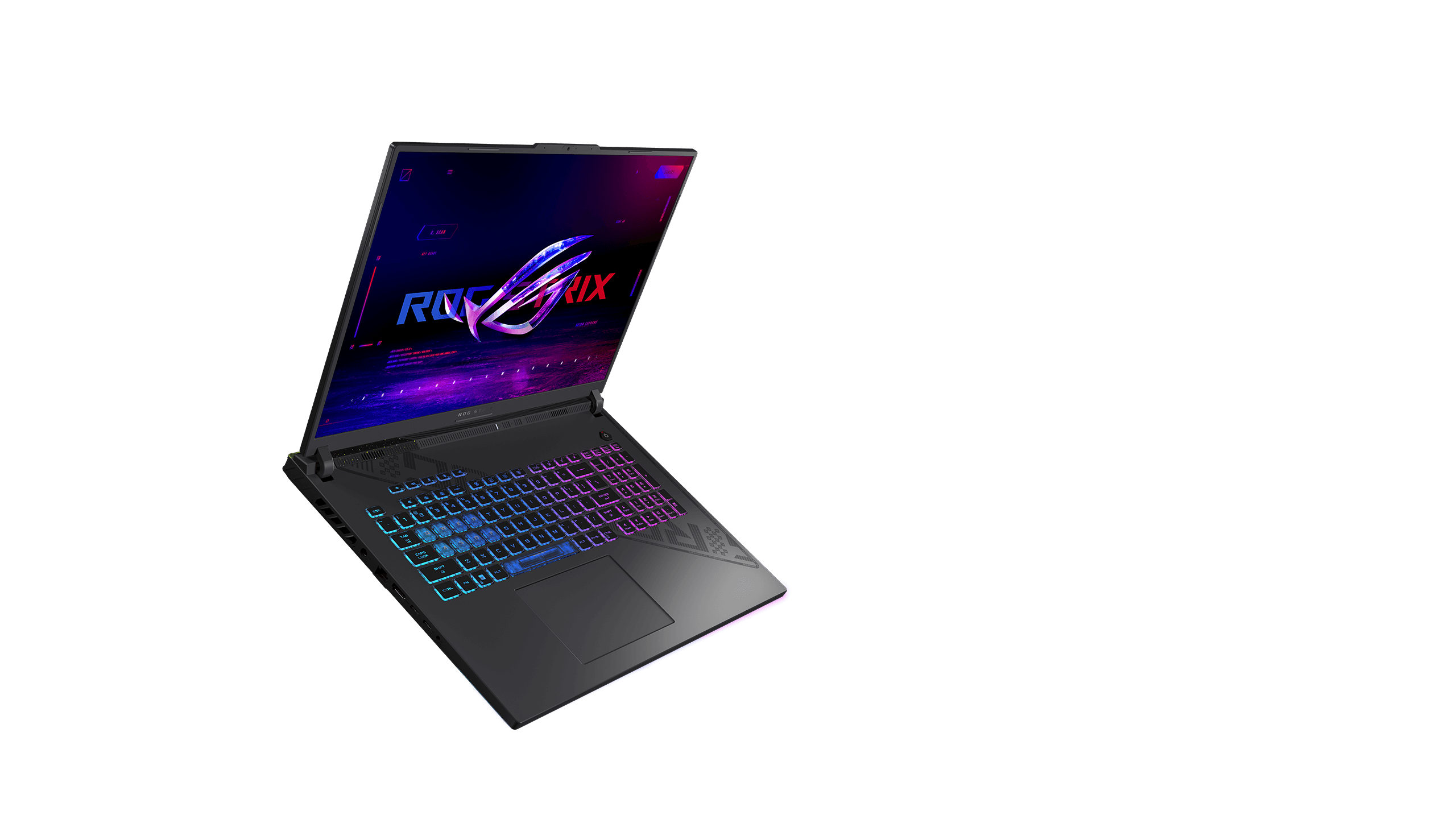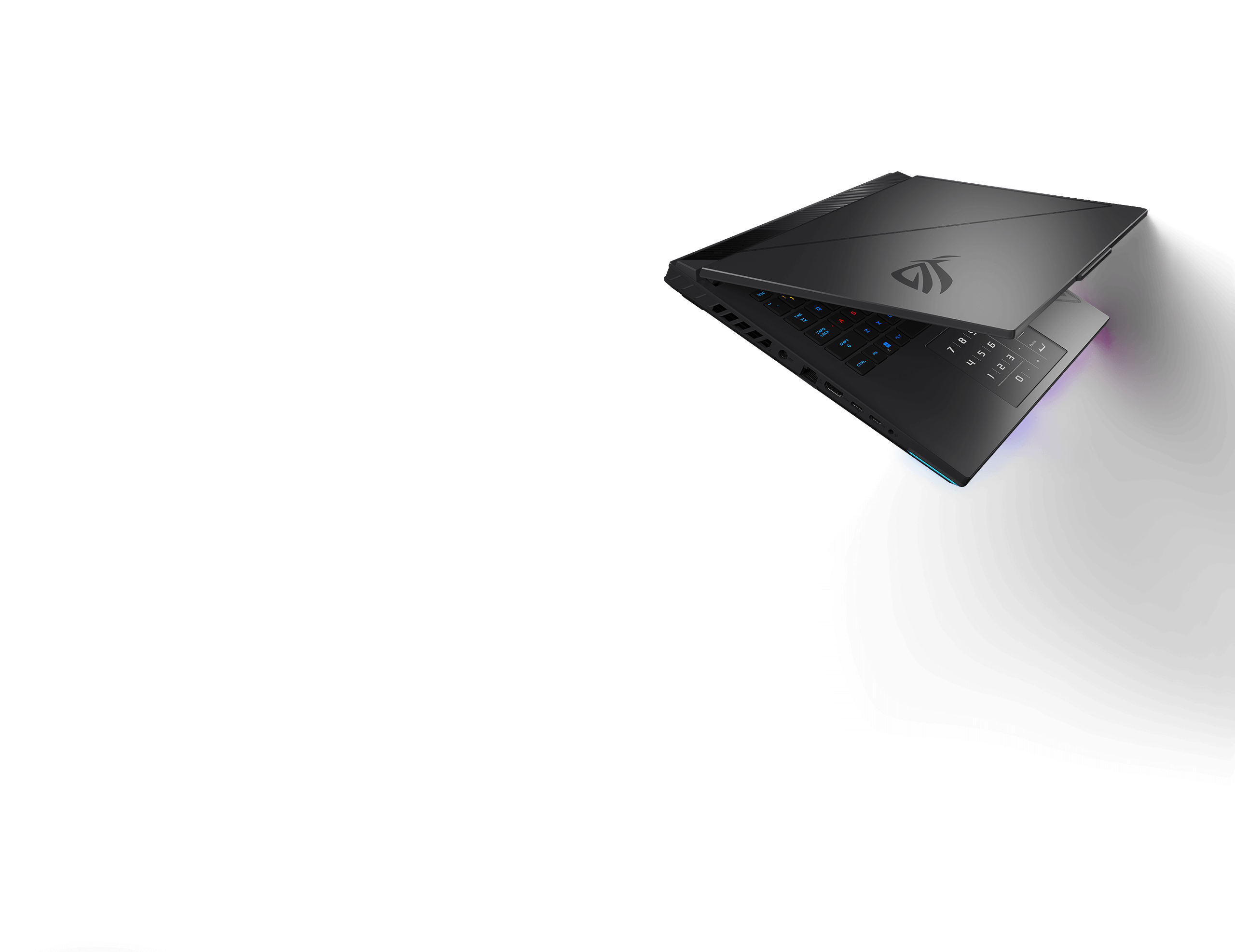 Thoughtful details set this laptop apart from the competition. Our 360° design philosophy puts subtle but distinctive elements across every part of the machine. The dot matrix design splashed across the lid cuts down to meet cross-hatched vents beneath the base. An expansive rubberized grip holds the laptop firmly in place and makes it easier to carry. Typographic elements around the trim subtly show off your ROG pride.