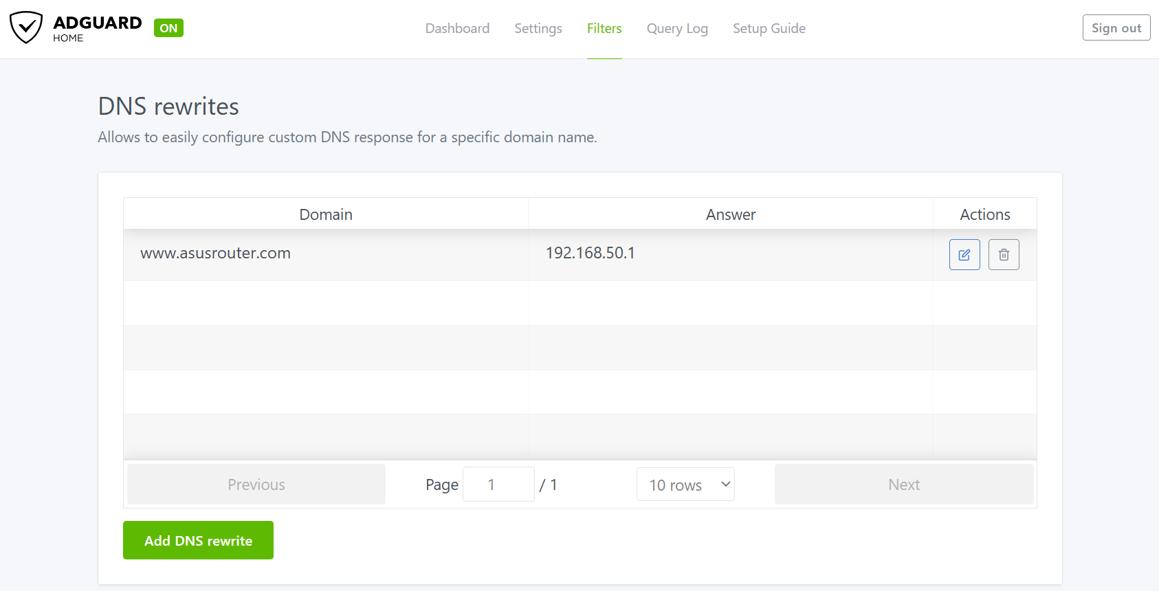 2. Or, in AdGuard Home, go to [Filters] > [DNS rewrites] and add a rule to point the URL to the correct IP address.