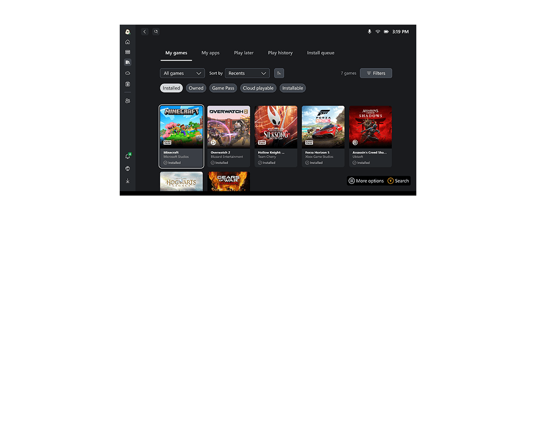 The ROG Raikiri II Xbox Wireless includes the essential Command Center and Library buttons. Additionally, the controller features signature design elements from the ROG Xbox Ally handheld such as the textured surface for a unified and familiar user experience.