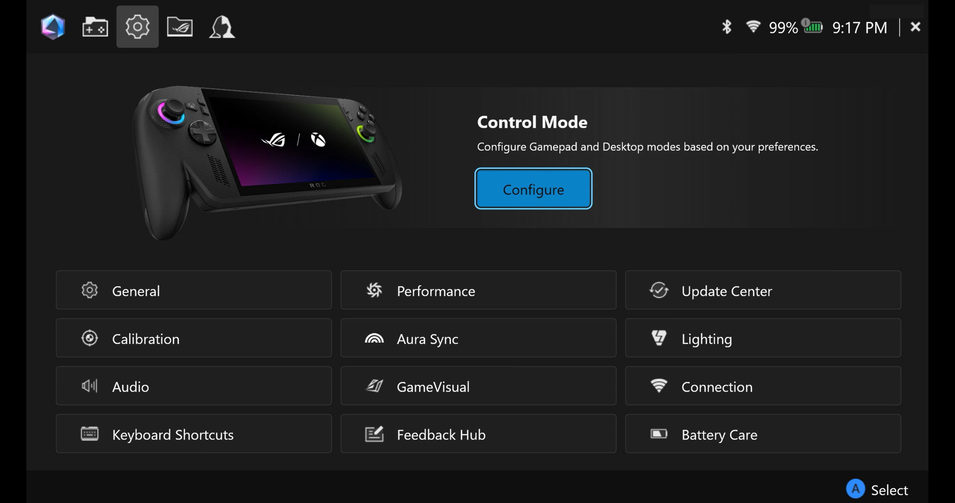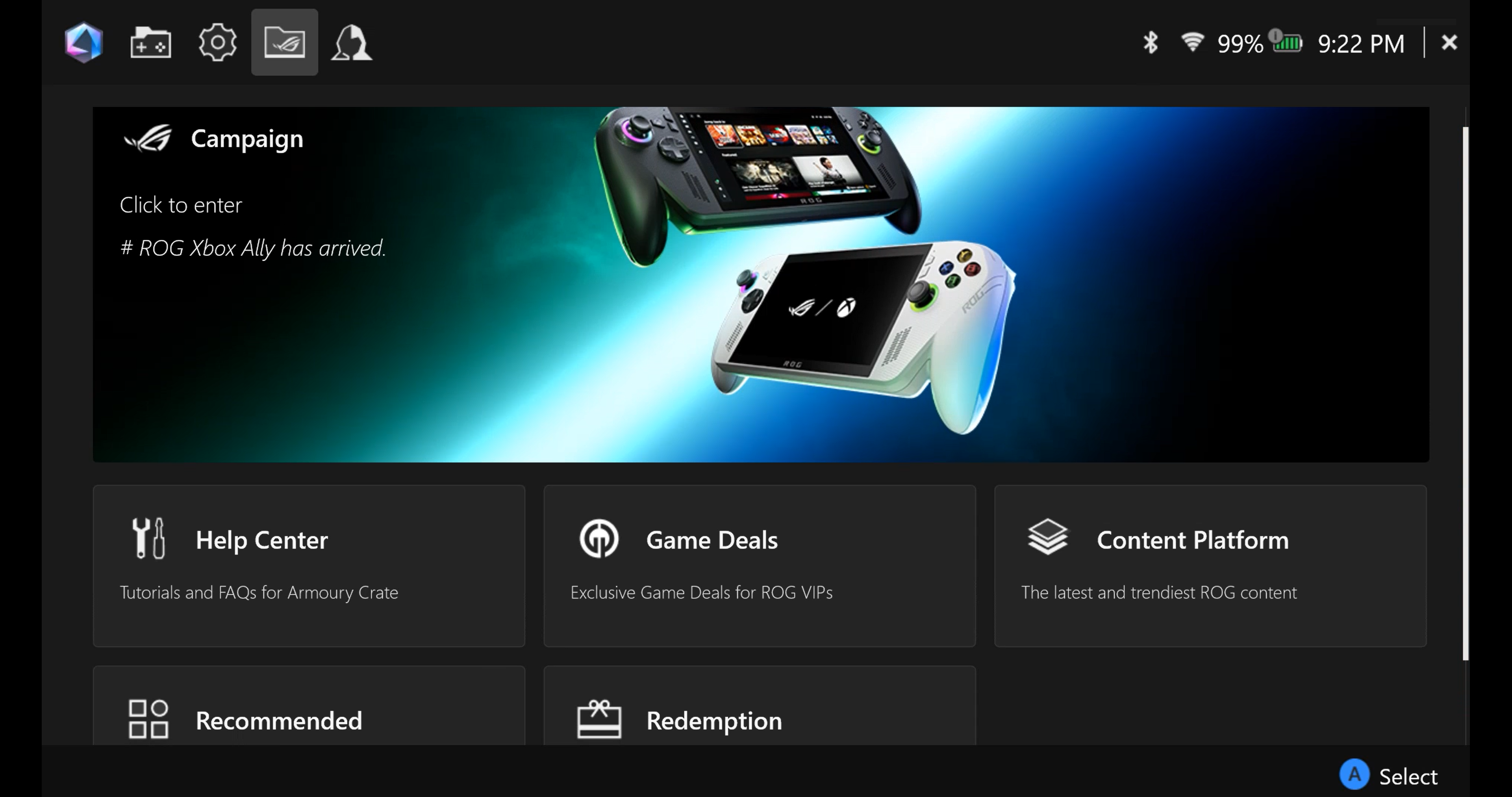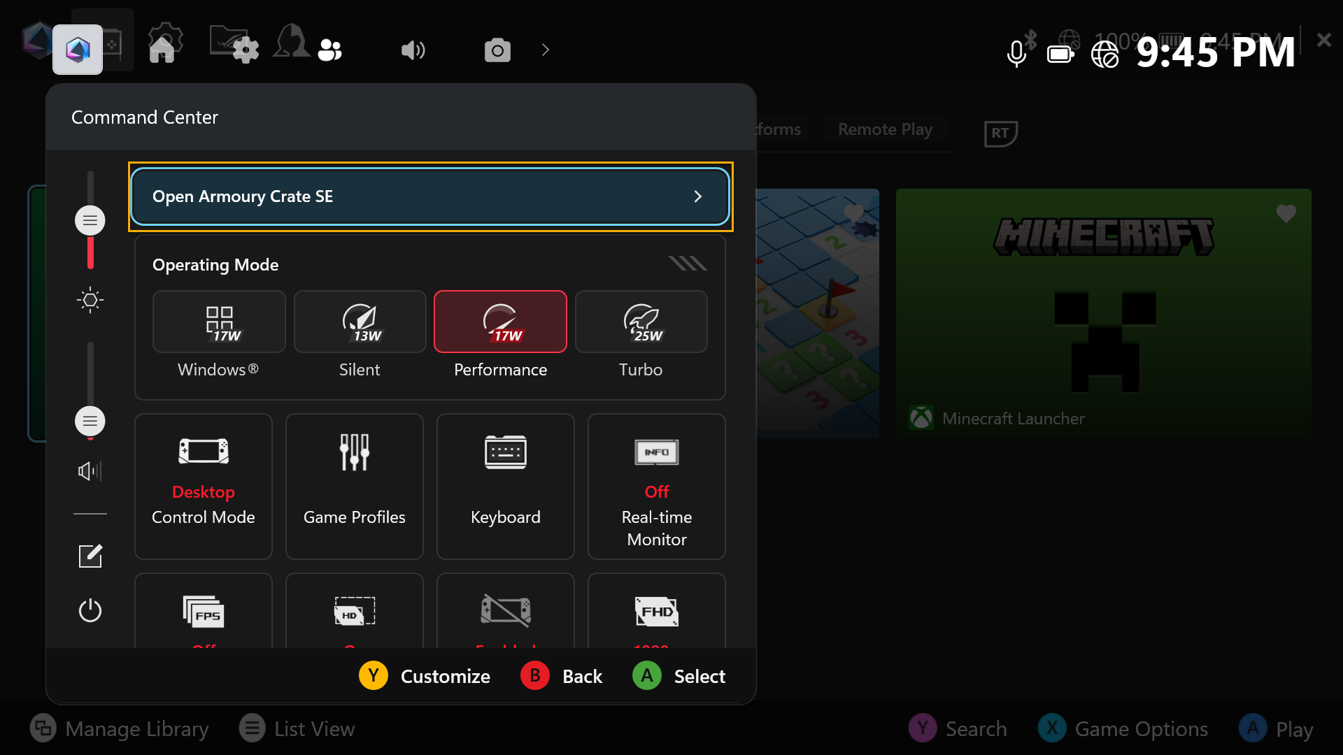 Armoury Crate SE is designed to be single platform for controlling and optimizing the ROG Ally. It provides a simple design for gamers to easily control their devices, manage their Game Library, configure Control Modes, customize Aura Sync lighting, and monitor real-time system information.