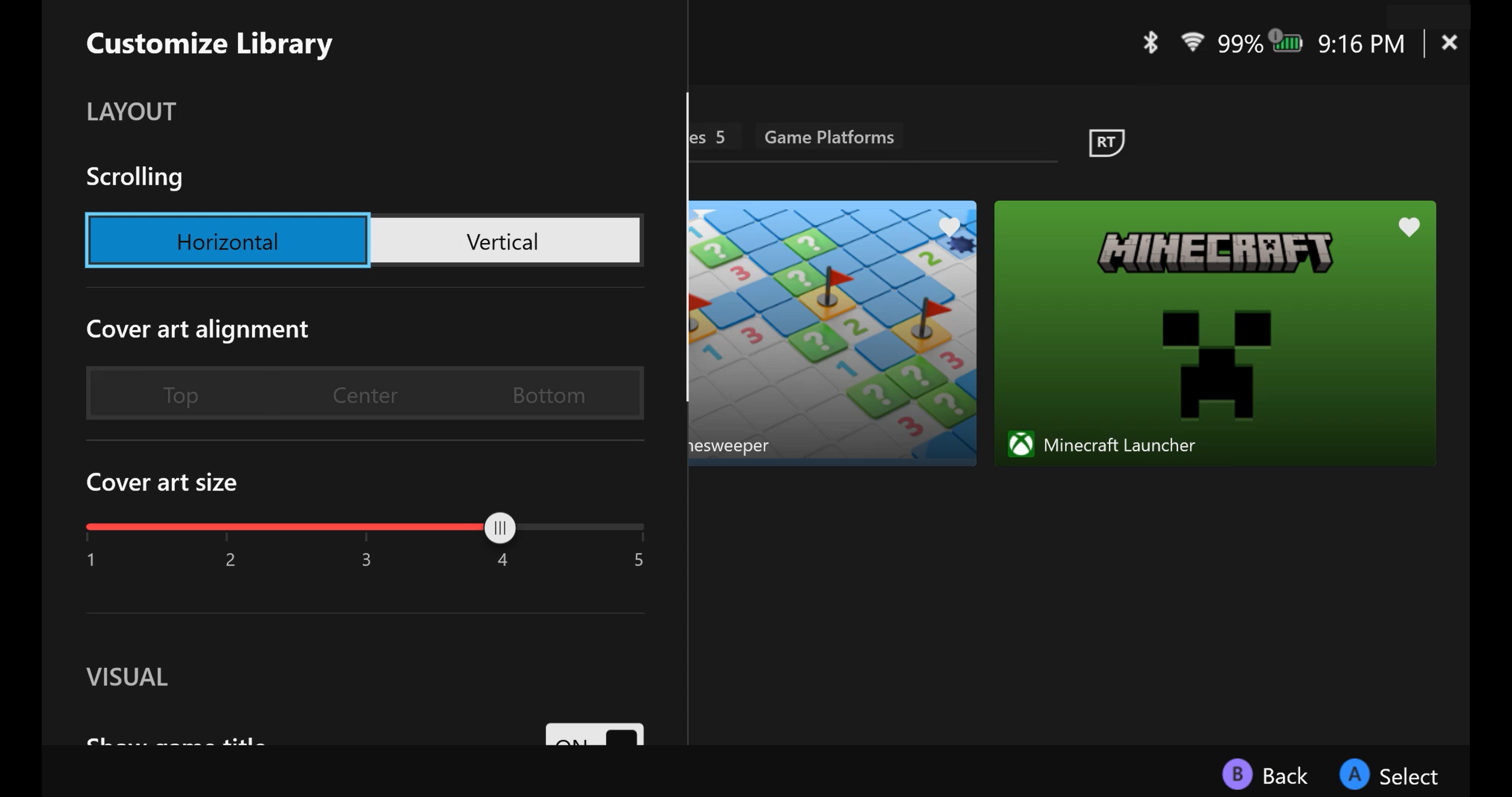 Manage Library: Players can add games to the game library and customize the layout and visual appearance of the library in *Customize Library.