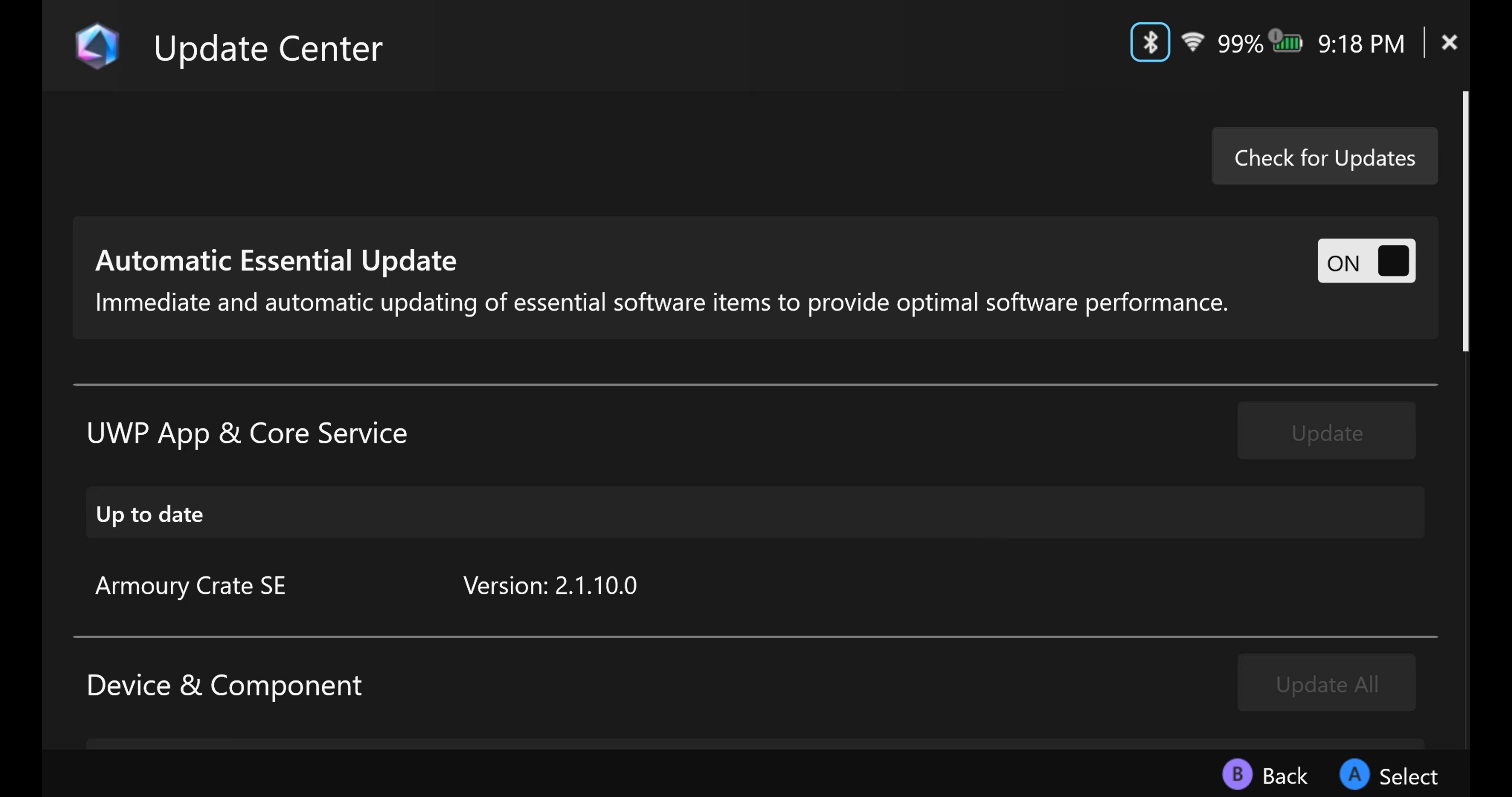 Update Center: Click [Check for Updates], and the utility will automatically check whether drivers or firmware are required to update.