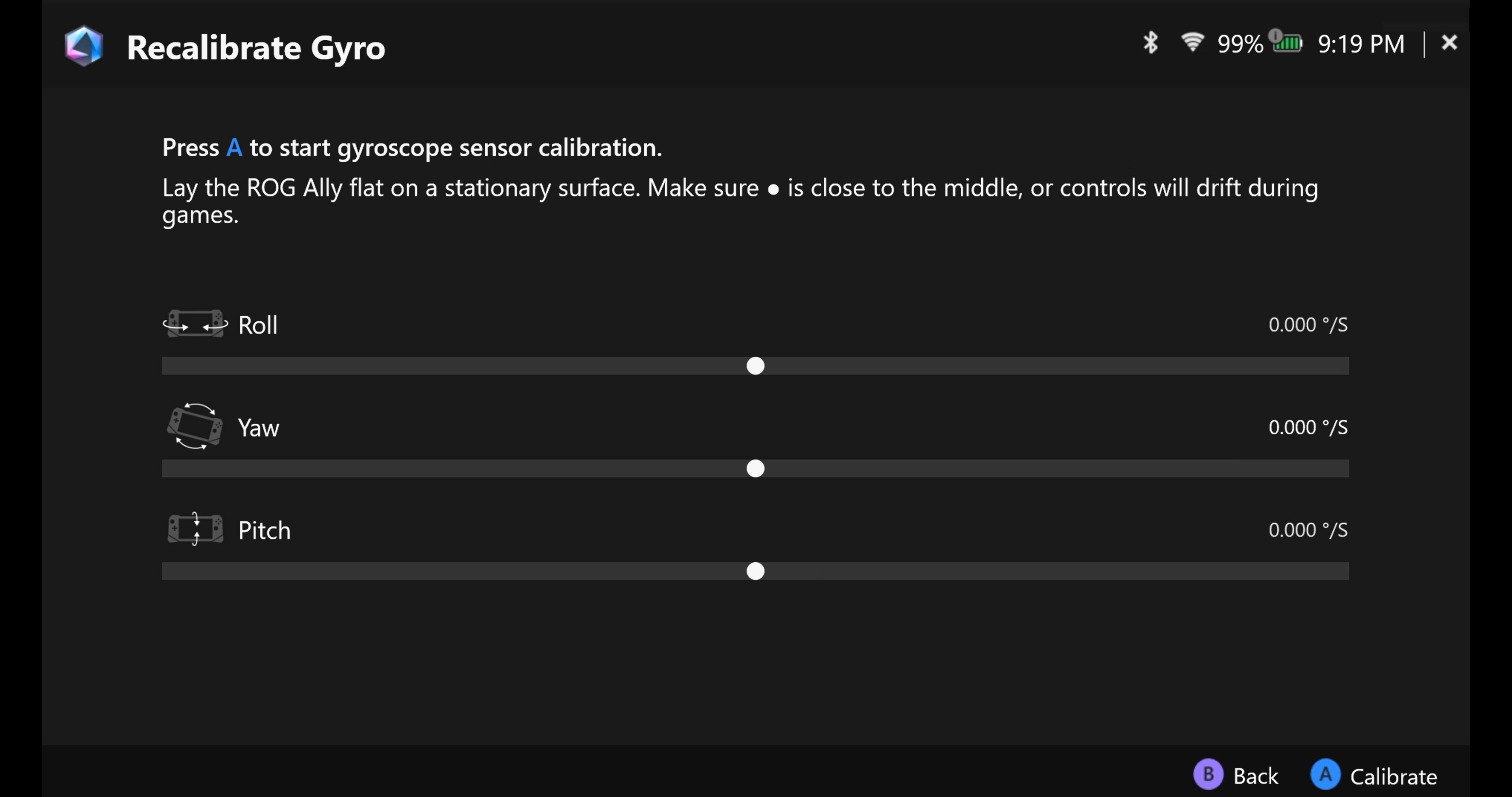 Recalibrate Gyro, press [A button] to start Gyro calibration, then follow the guidance to calibrate.