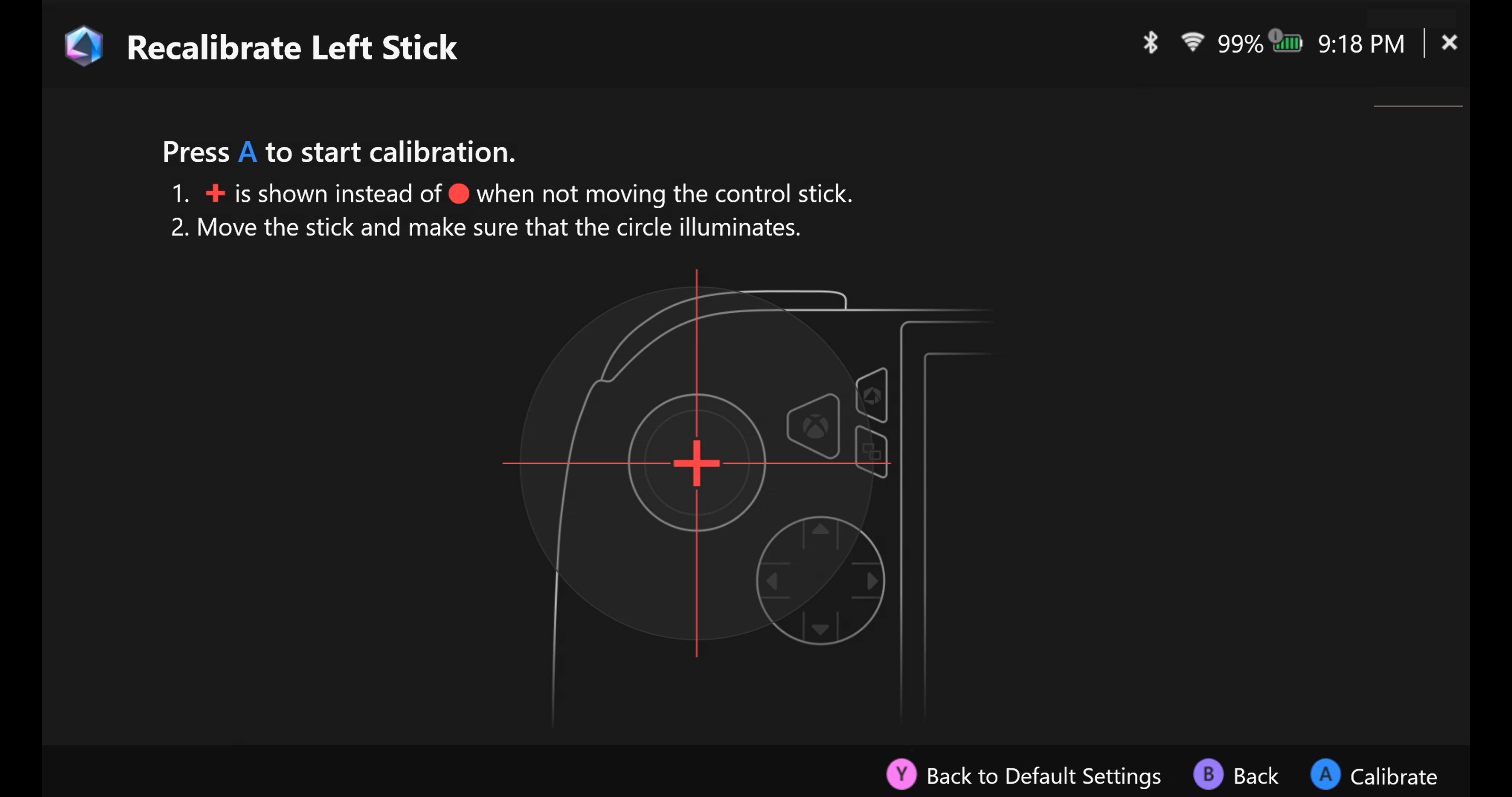 Recalibrate stick, press [A key] to start stick calibration, then follow the guidance to calibrate.