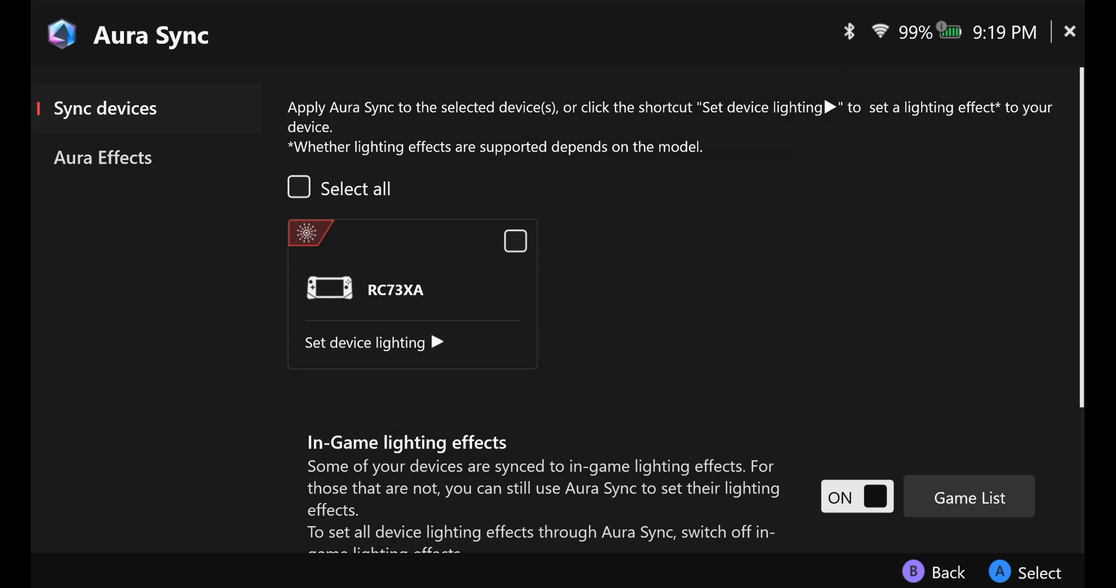 Aura Sync: Pair the ROG Ally with other Aura Sync compatible devices for synchronized lighting.