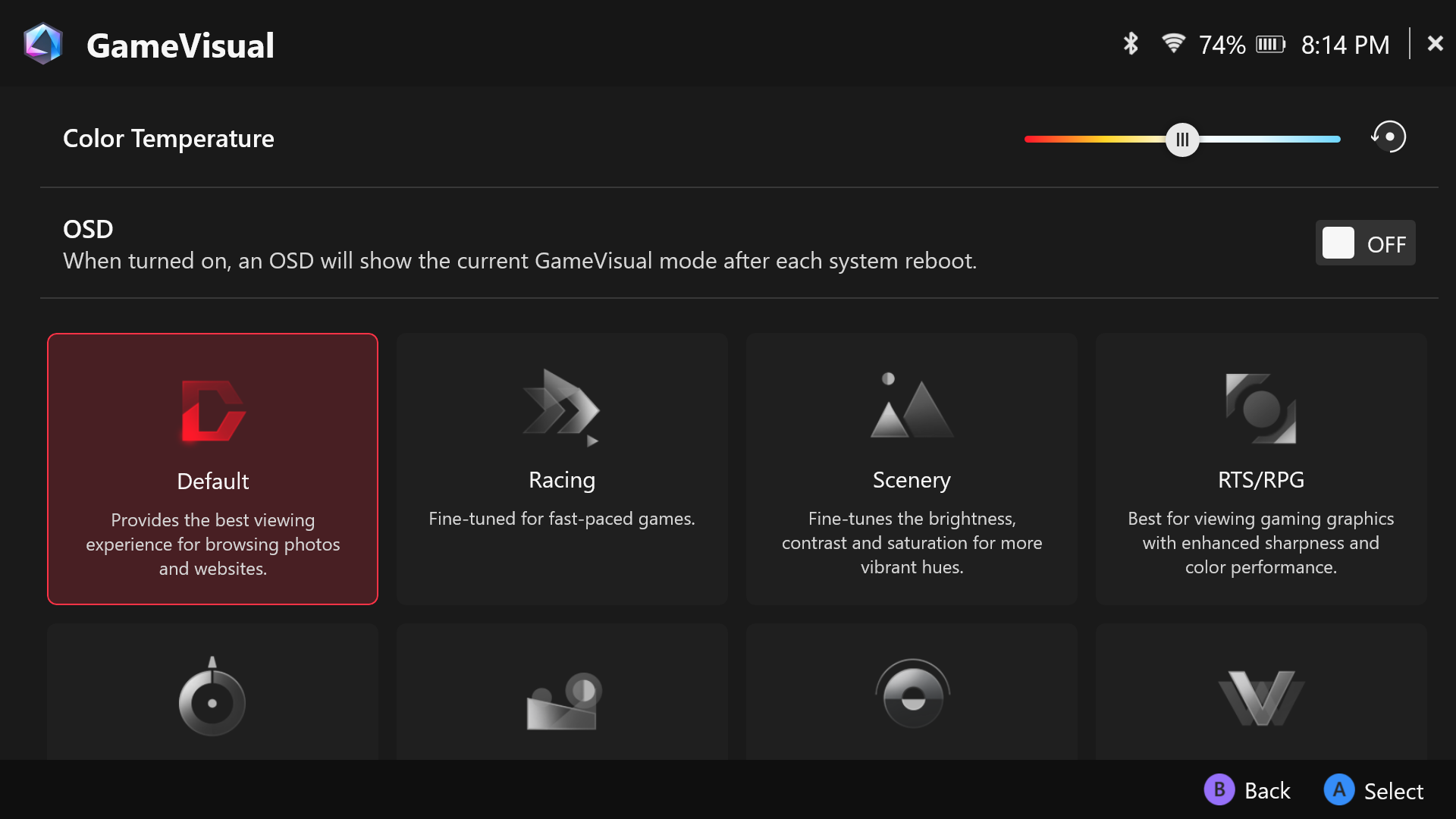 Game Visual: A screen color management tool that provides a variety of options to alter the screen color depending on game genre and personal preference.