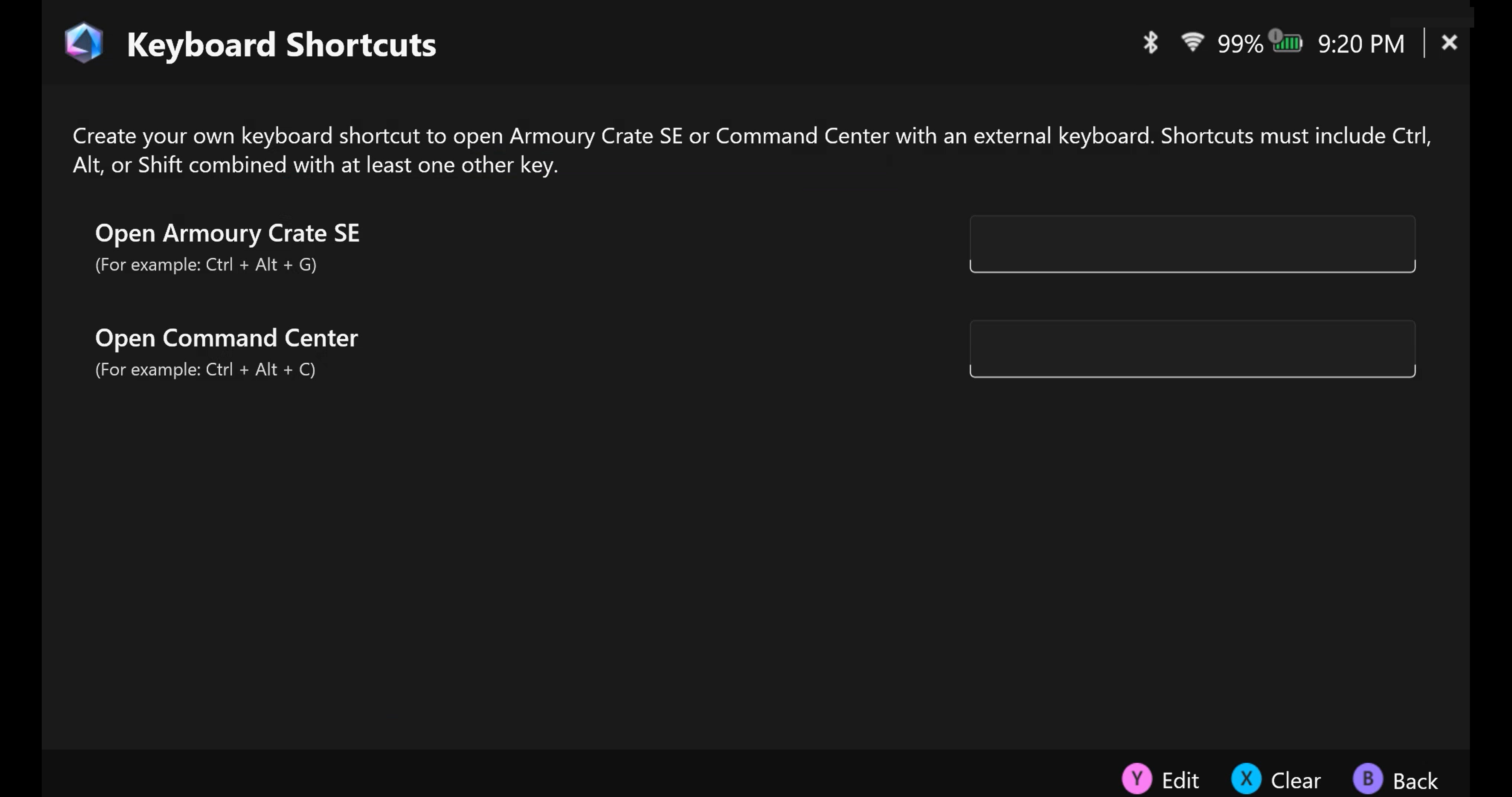 Keyboard Shortcuts: Create your own keyboard shortcut to open Armoury Crate SE or Command Center with an external keyboard.