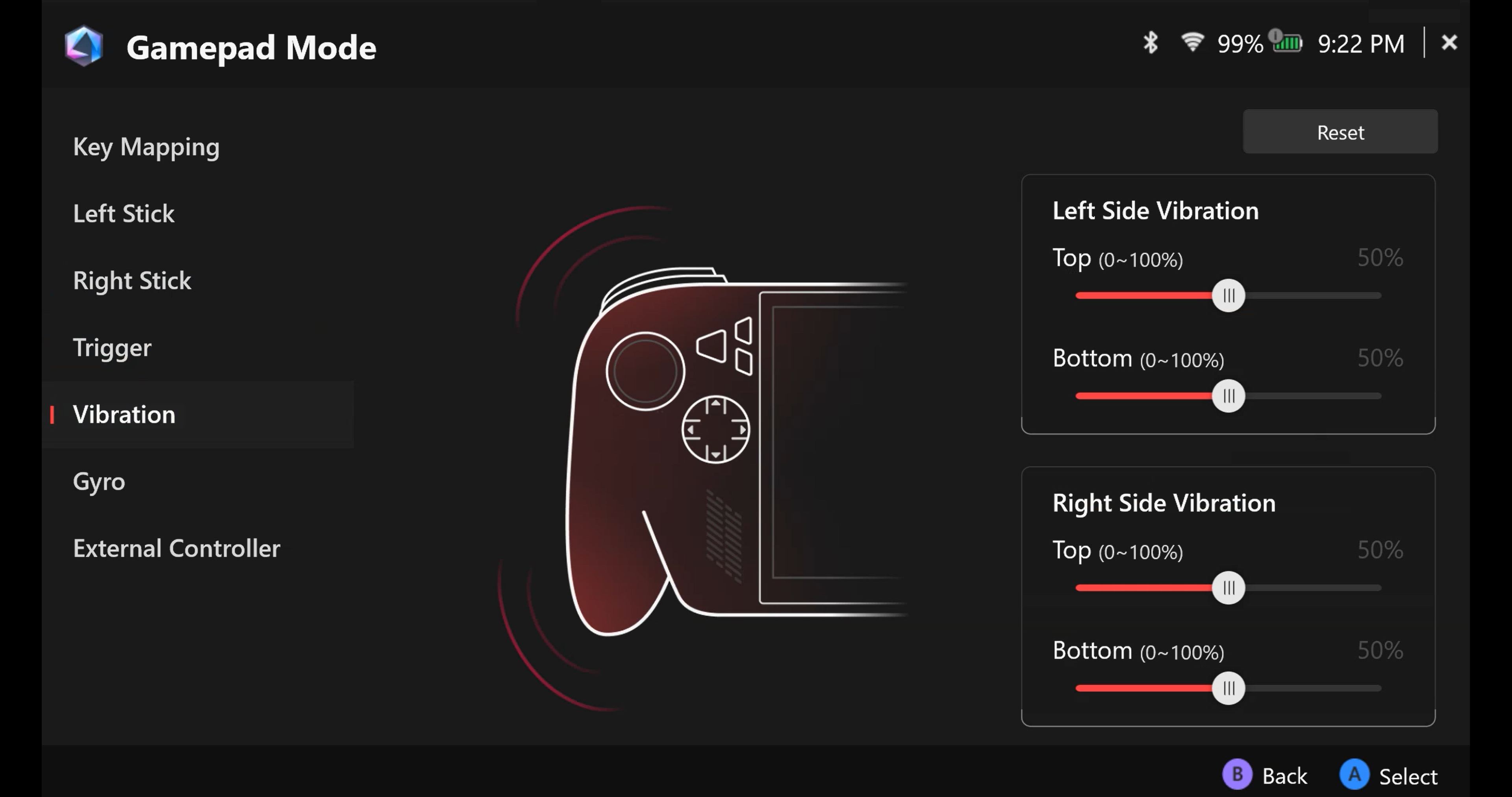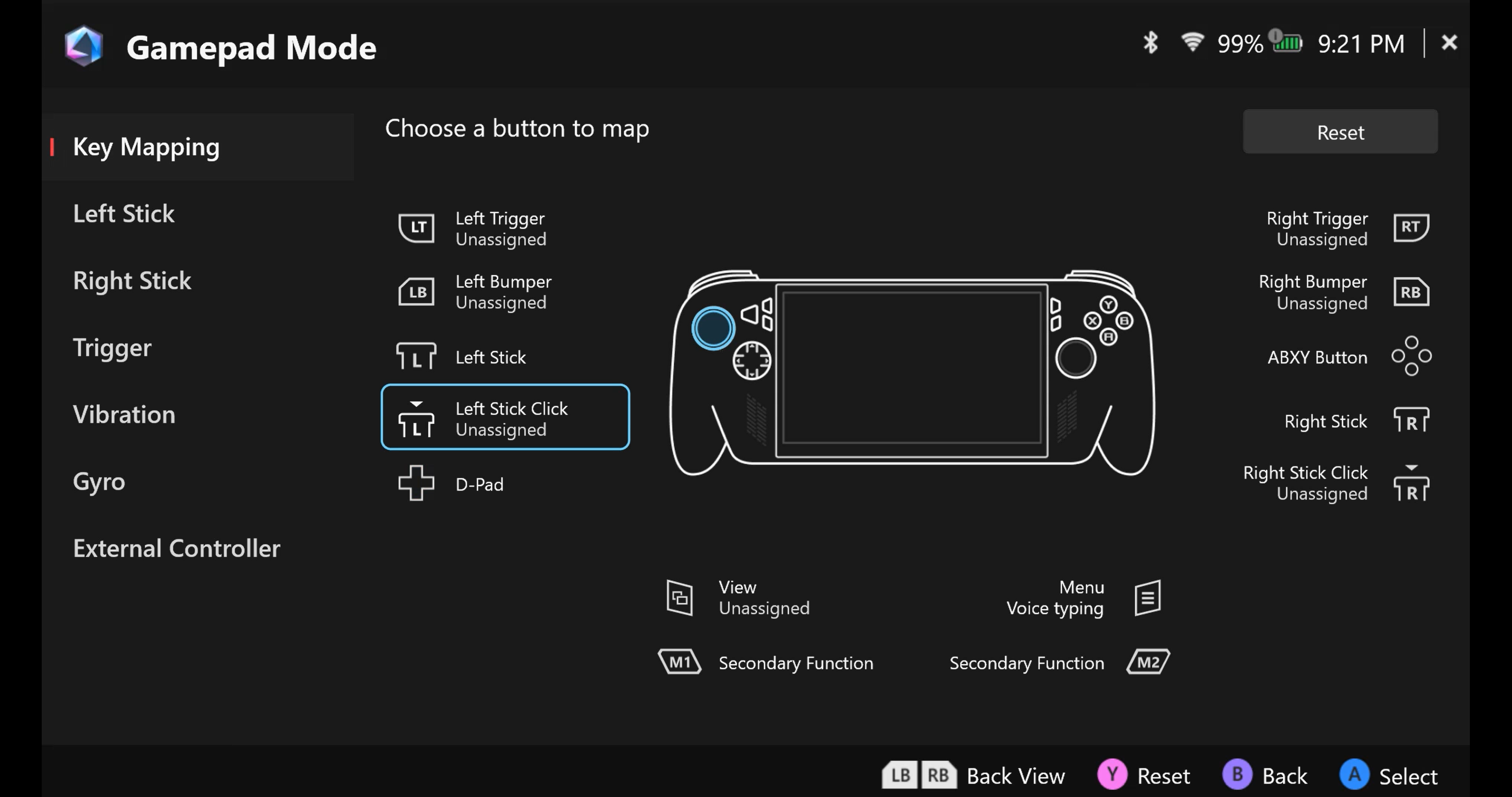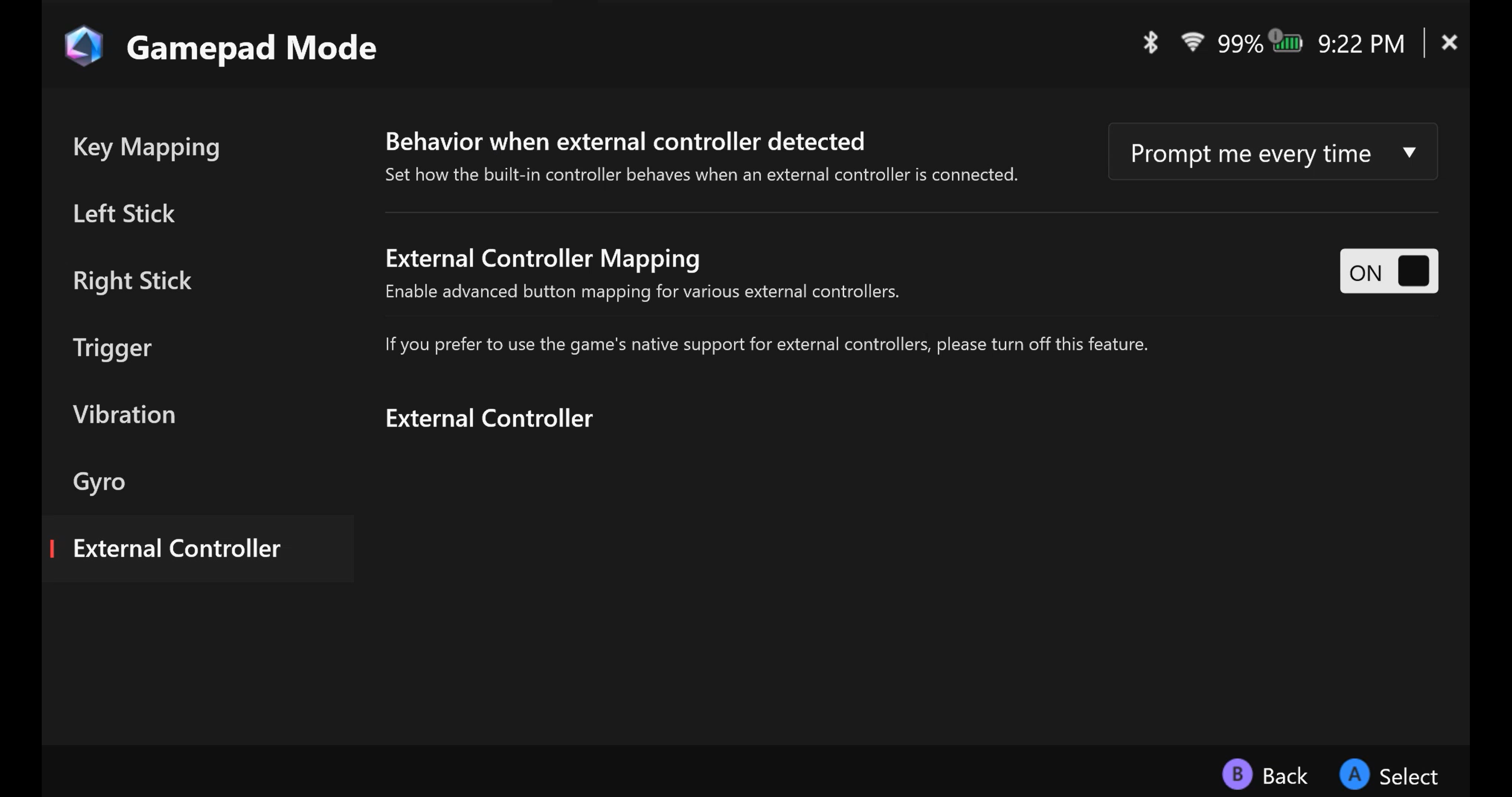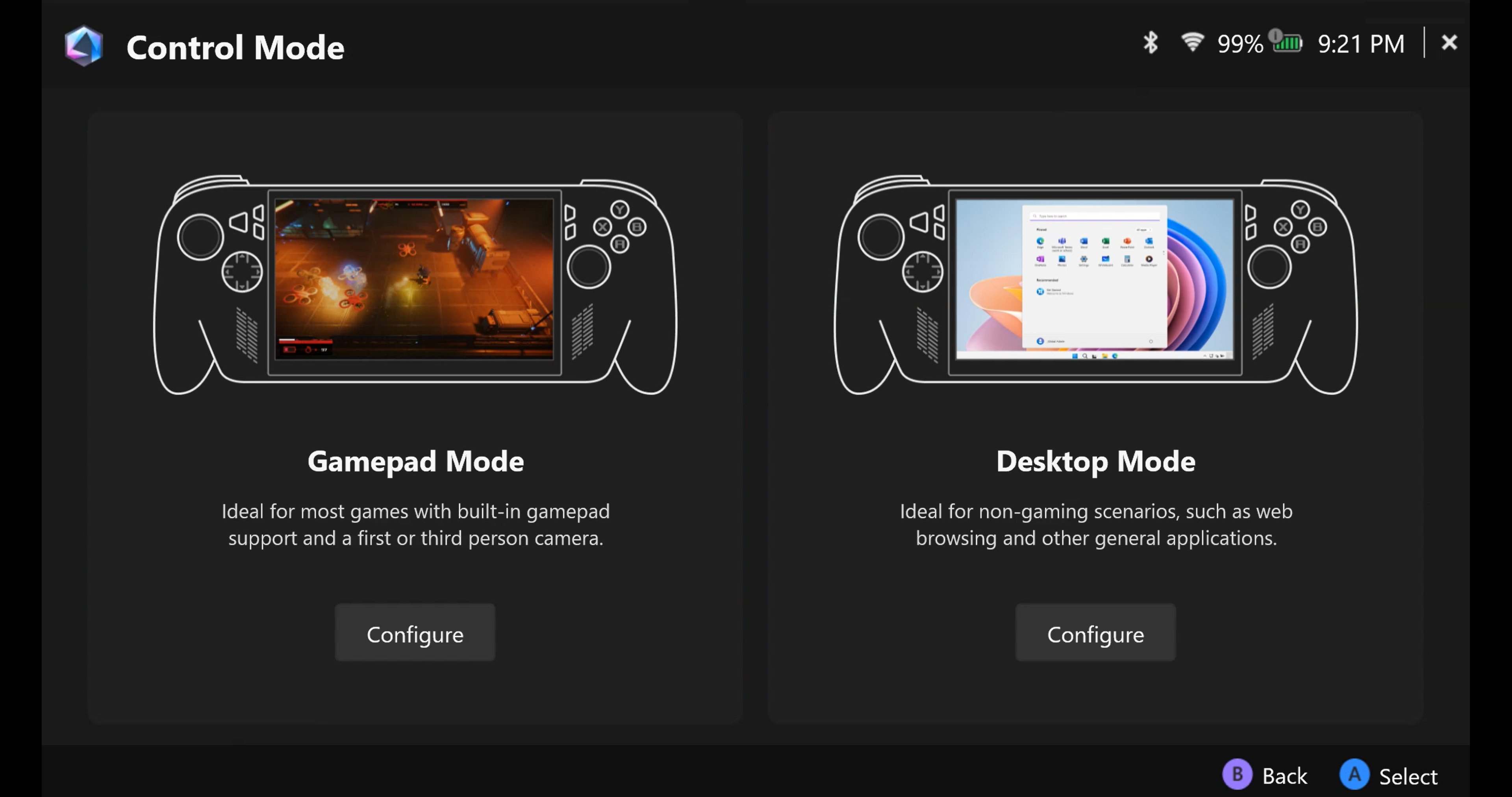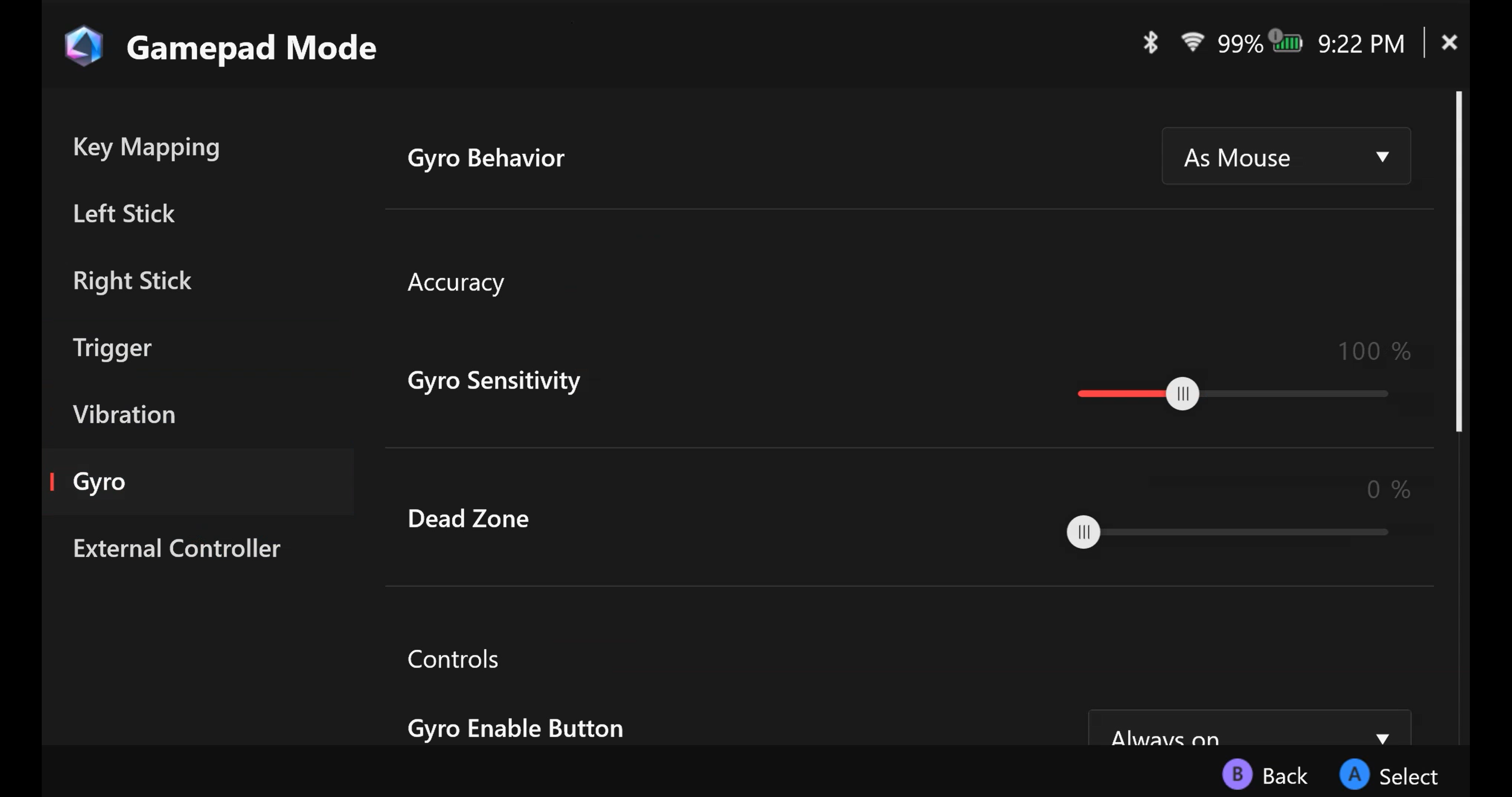 The Control Mode provides [Gamepad Mode] and [Desktop Mode] two preset modes, it allows for customization of the buttons, sticks, triggers, vibration, Gyro and External Controller when the device is either in Gamepad Mode or Desktop Mode.