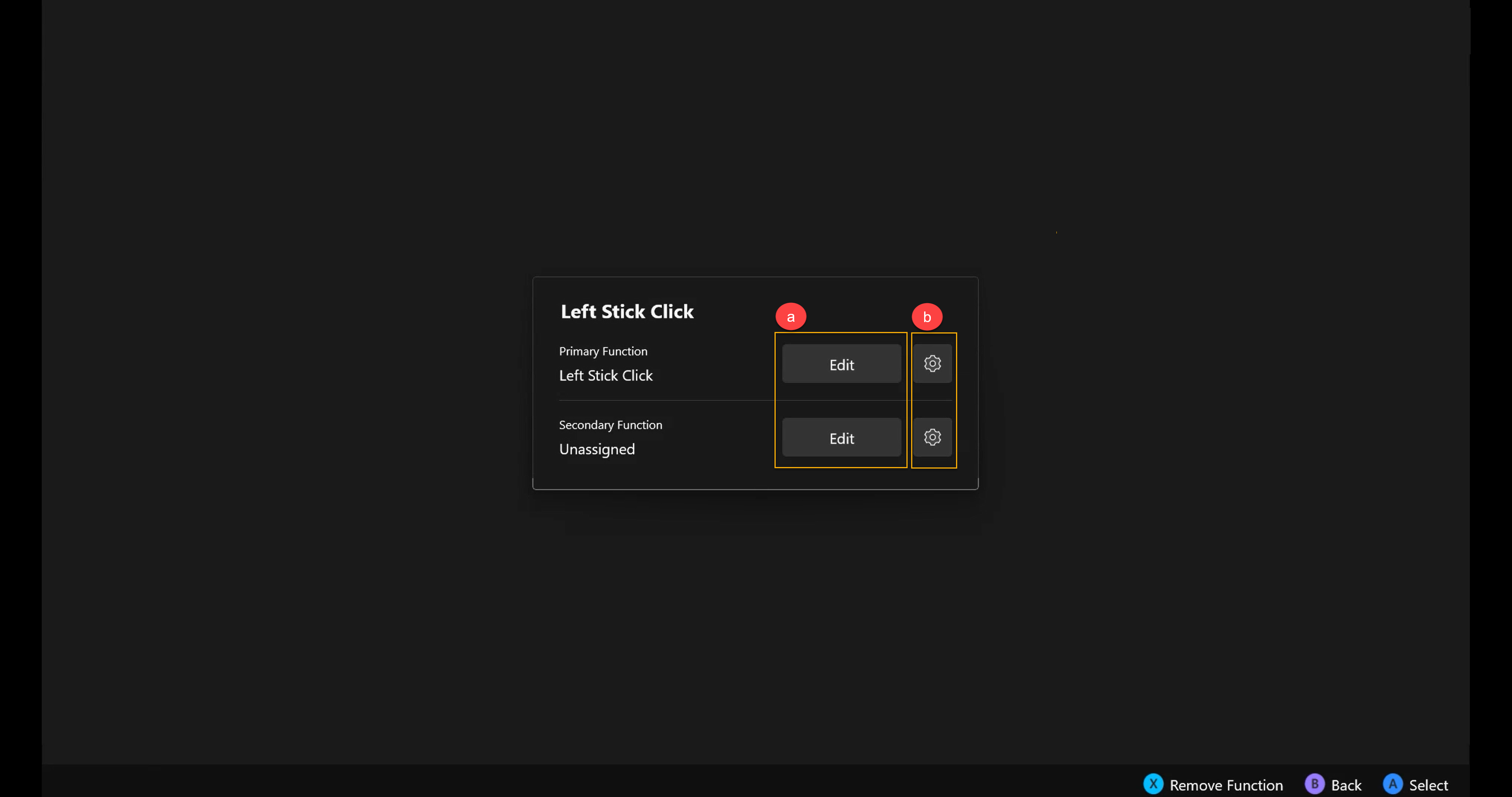 a. While key mapping, one function will be mapped as the [Primary Button] and the second will be mapped as the [Secondary Function], with the secondary function accessible by holding one of the rear paddles and pressing the button.