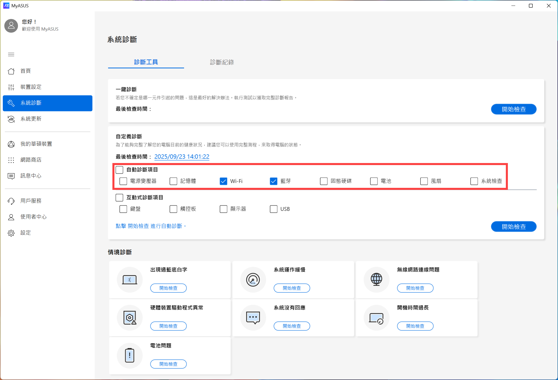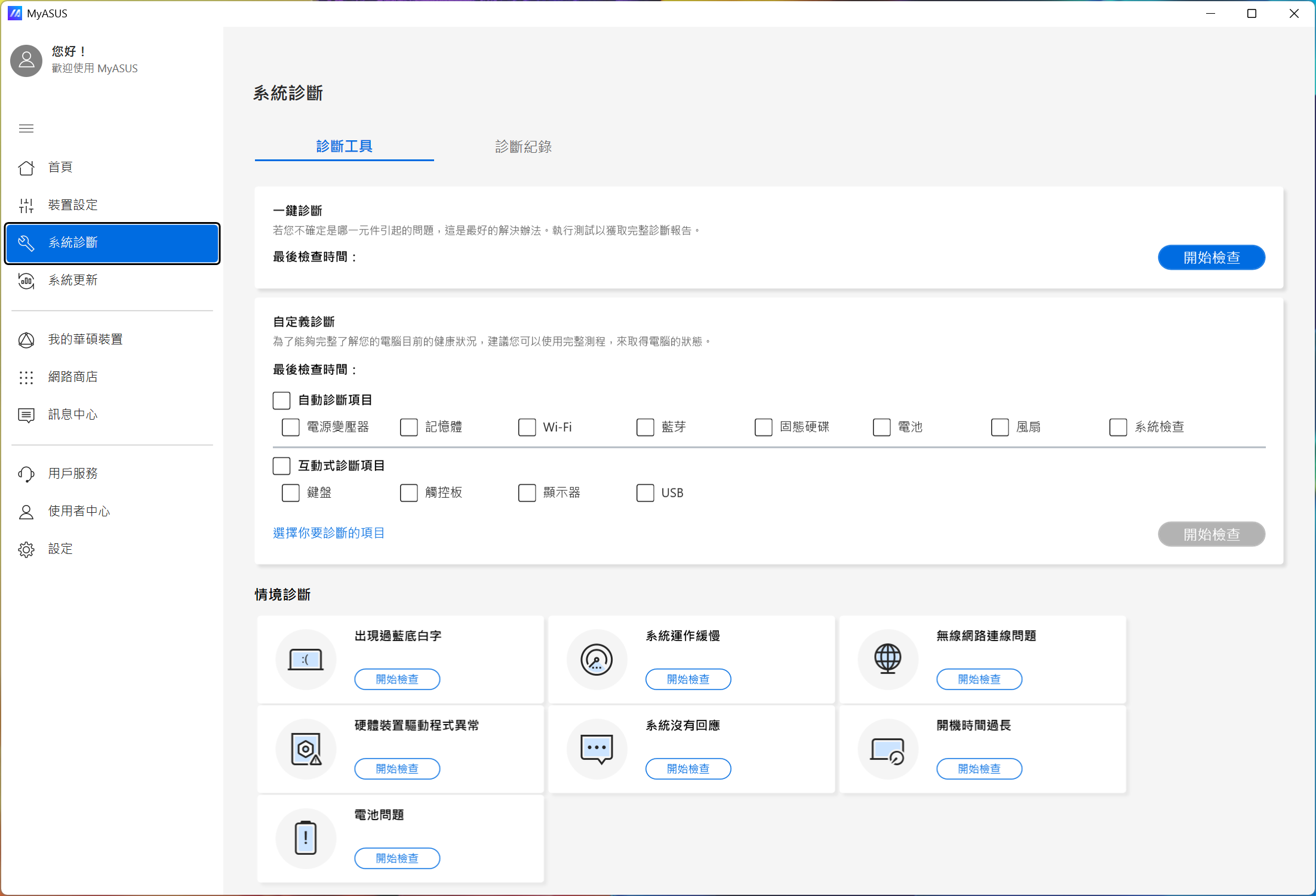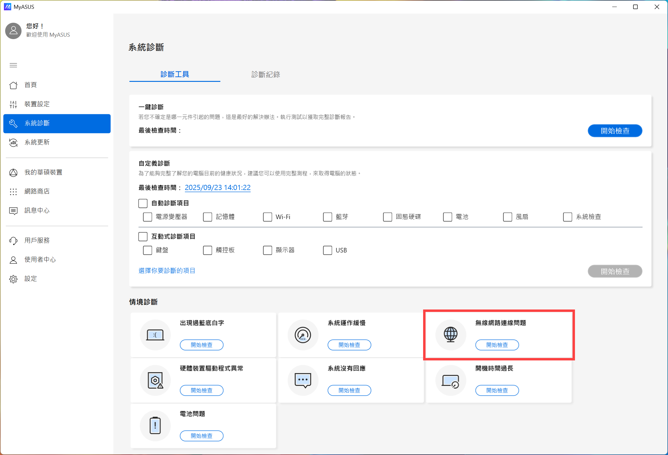 問題二:MyASUS的系統診斷可以在飛航模式下使用嗎?