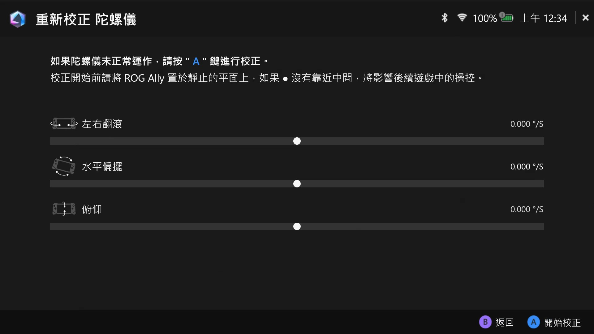 陀螺儀校正,按下 [A鍵] 開始陀螺儀校正,之後請依照指示進行校正。