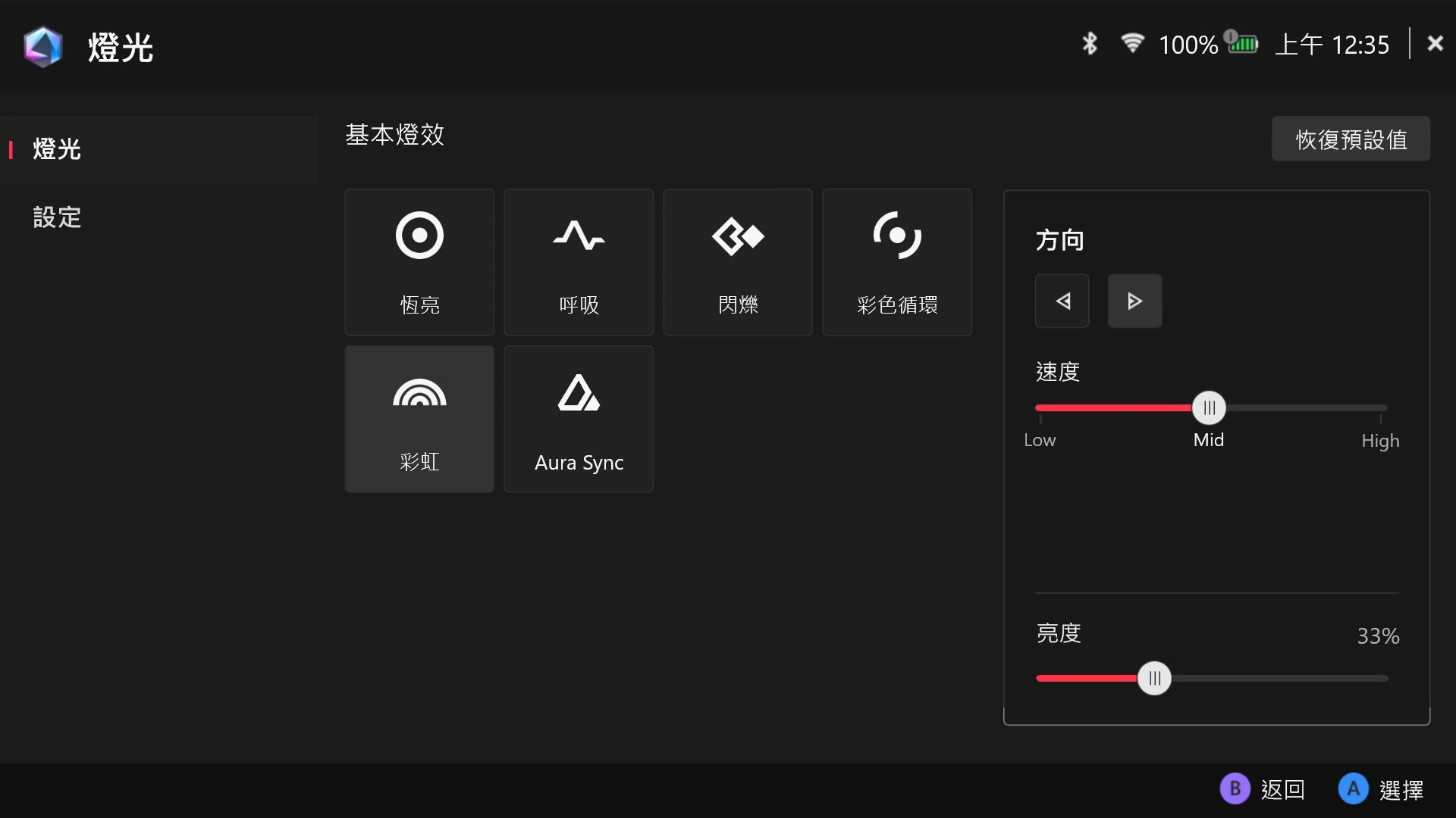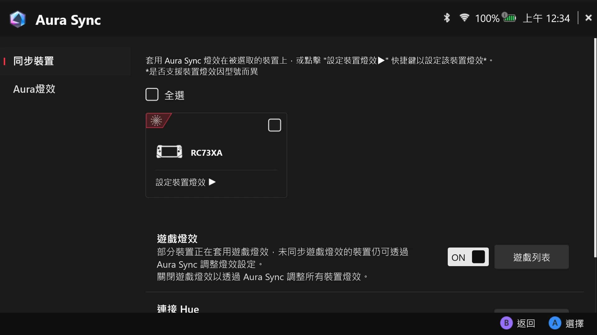 Aura Sync: 整合支援Aura Sync功能的周邊裝置並進行同步Aura燈效的串動。