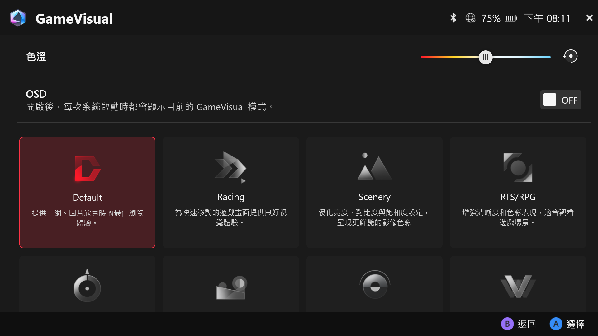 GameVisual: 螢幕色彩管理工具,提供多種螢幕色彩情境模式的套用為玩家帶來最佳的個人視覺體驗。