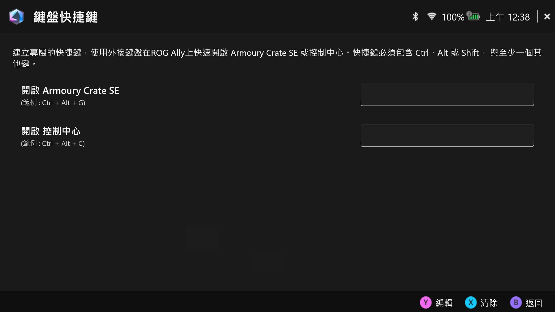 鍵盤快捷鍵: 在使用的外接鍵盤上建立專屬的快捷鍵用以快速開啟Armoury Crate SE或控制中心。