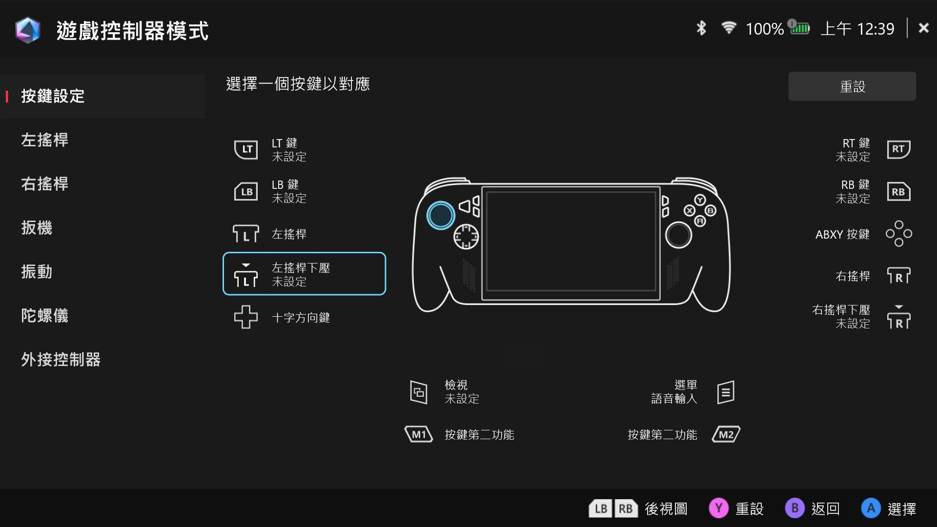 按鍵設定: 控制模式中預設的遊戲控制器和桌面模式可依玩家需求進行重新配置。