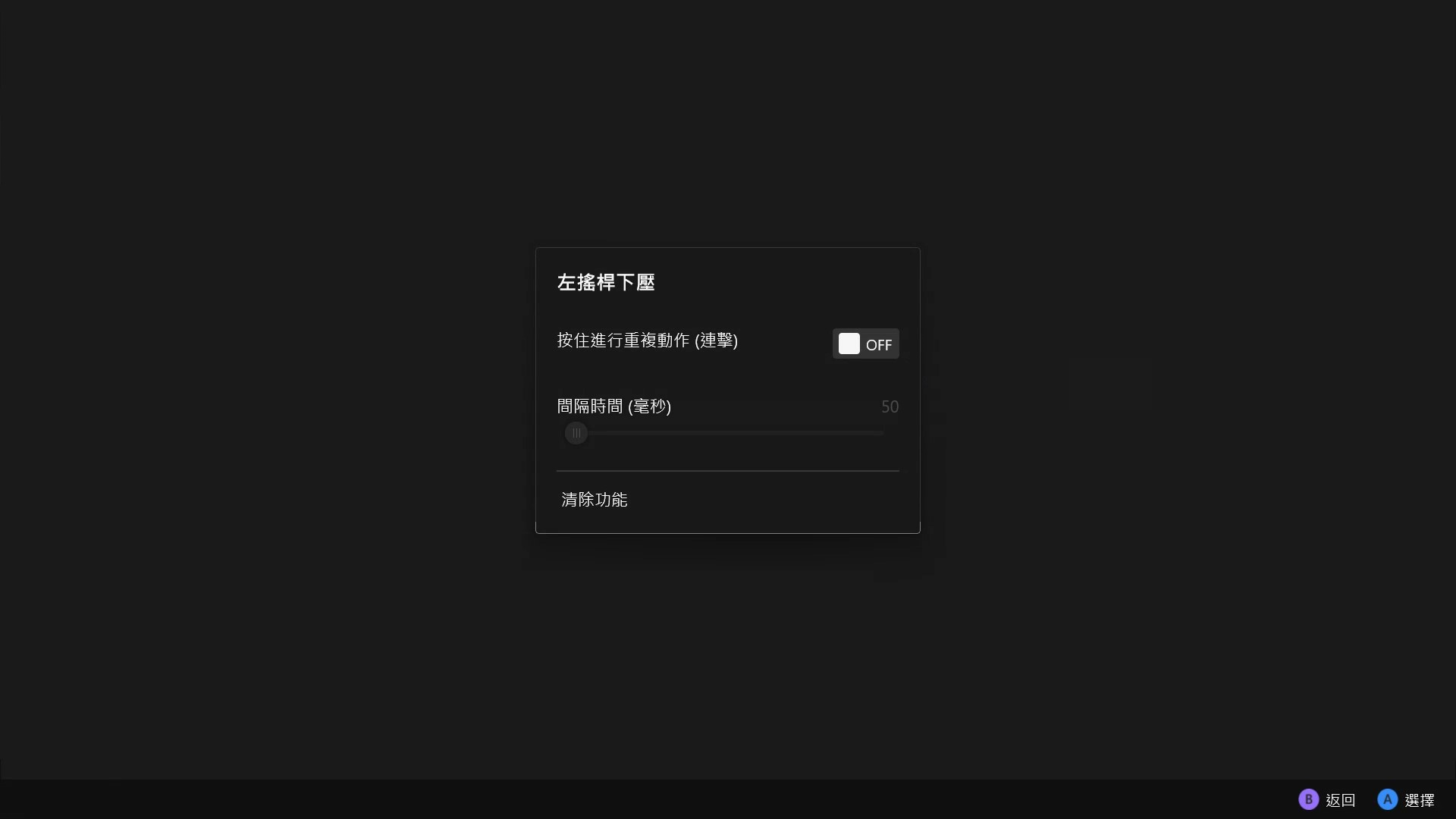 b. 連擊設定: 開啟連擊功能此按鍵將進行重複動作,而重複動作的間隔時間亦可自行設定。