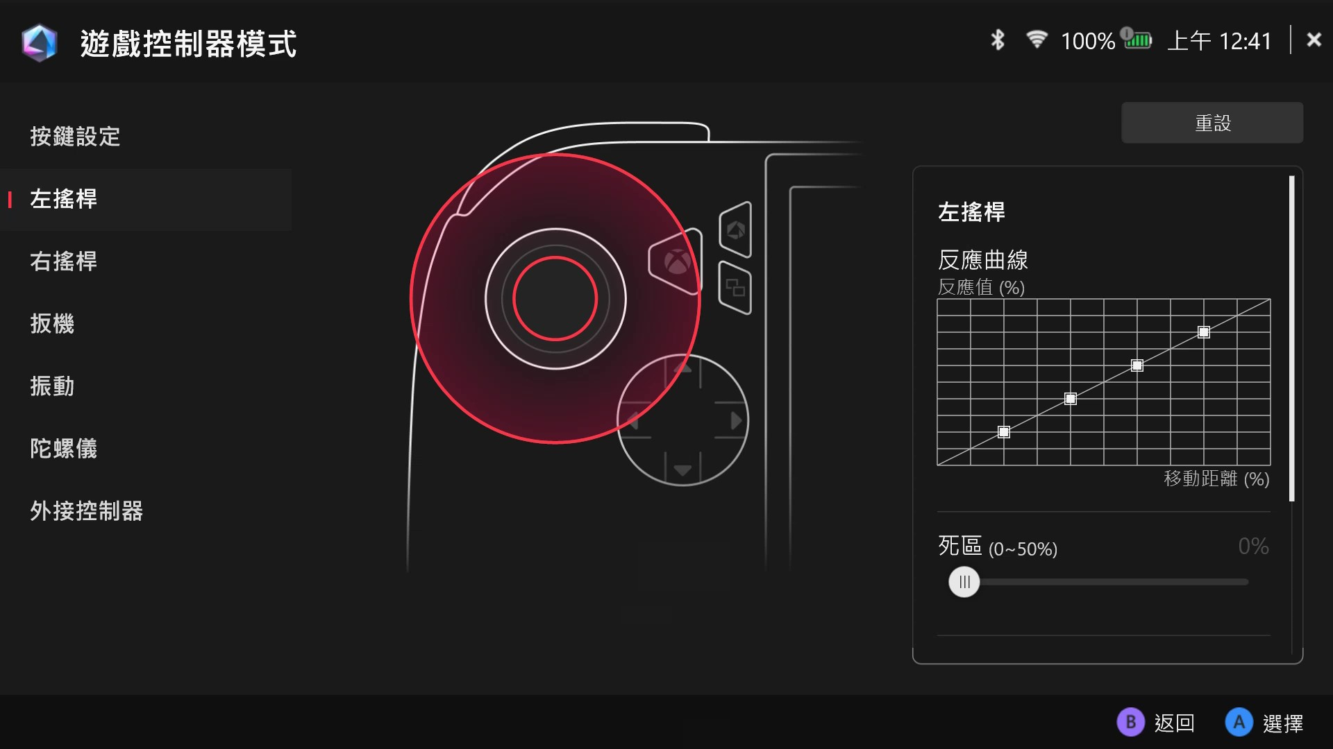 反應曲線: 此項目提供玩家對搖桿操控的敏感度設定。