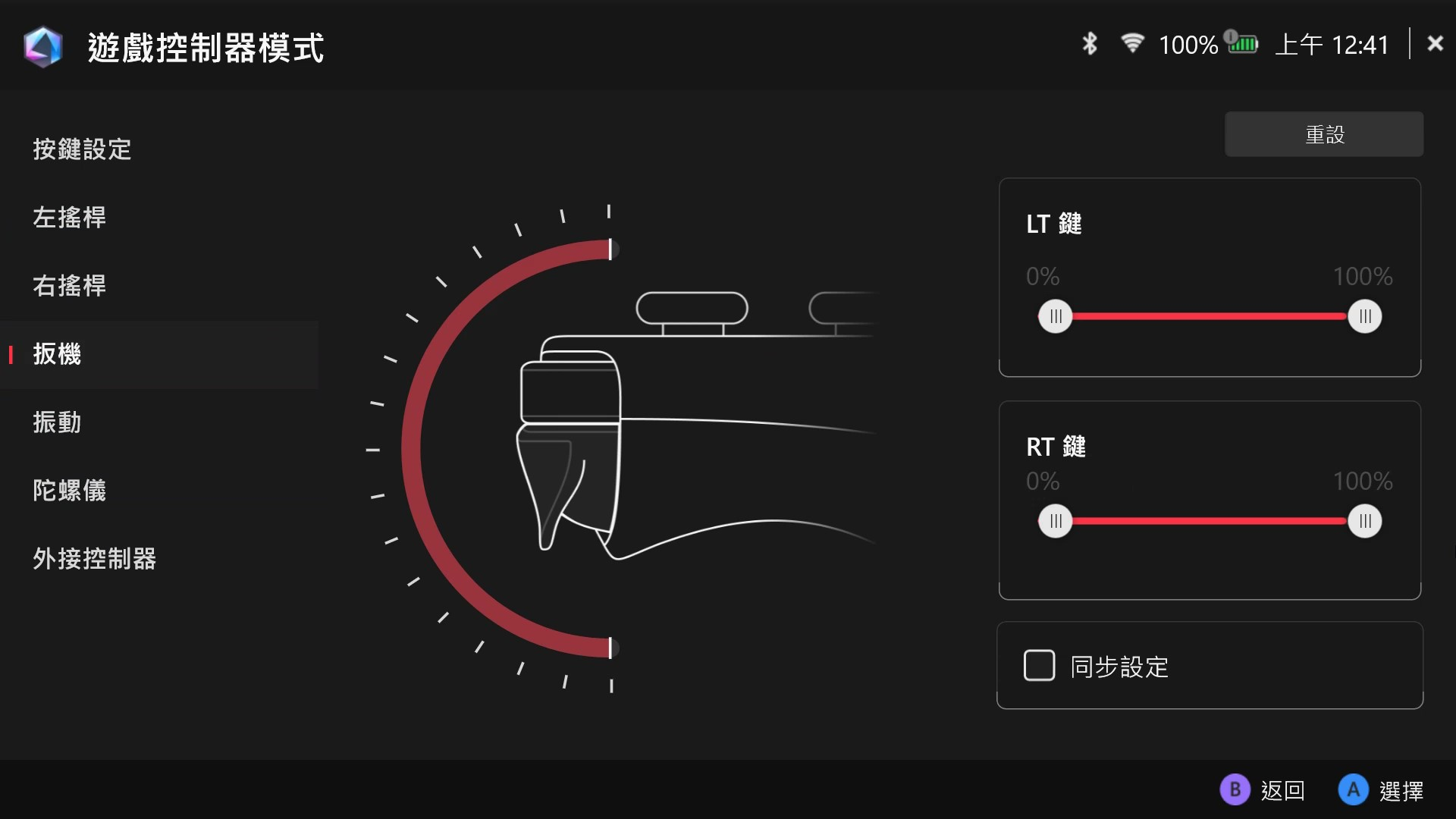 玩家可分別設定左右兩側扳機的死區,或選擇透過[同步設定]功能同時調整兩側扳機。