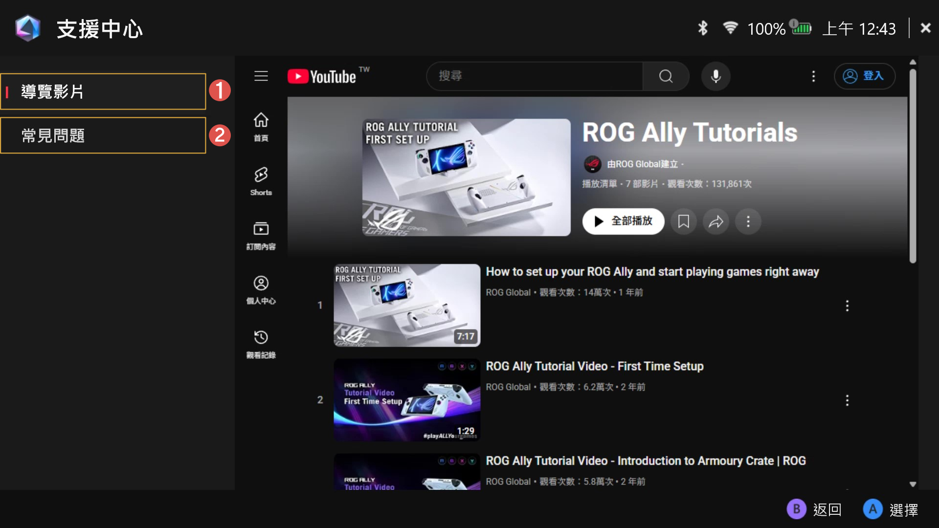 ①導覽影片: 提供ROG Ally的基礎操作影片。