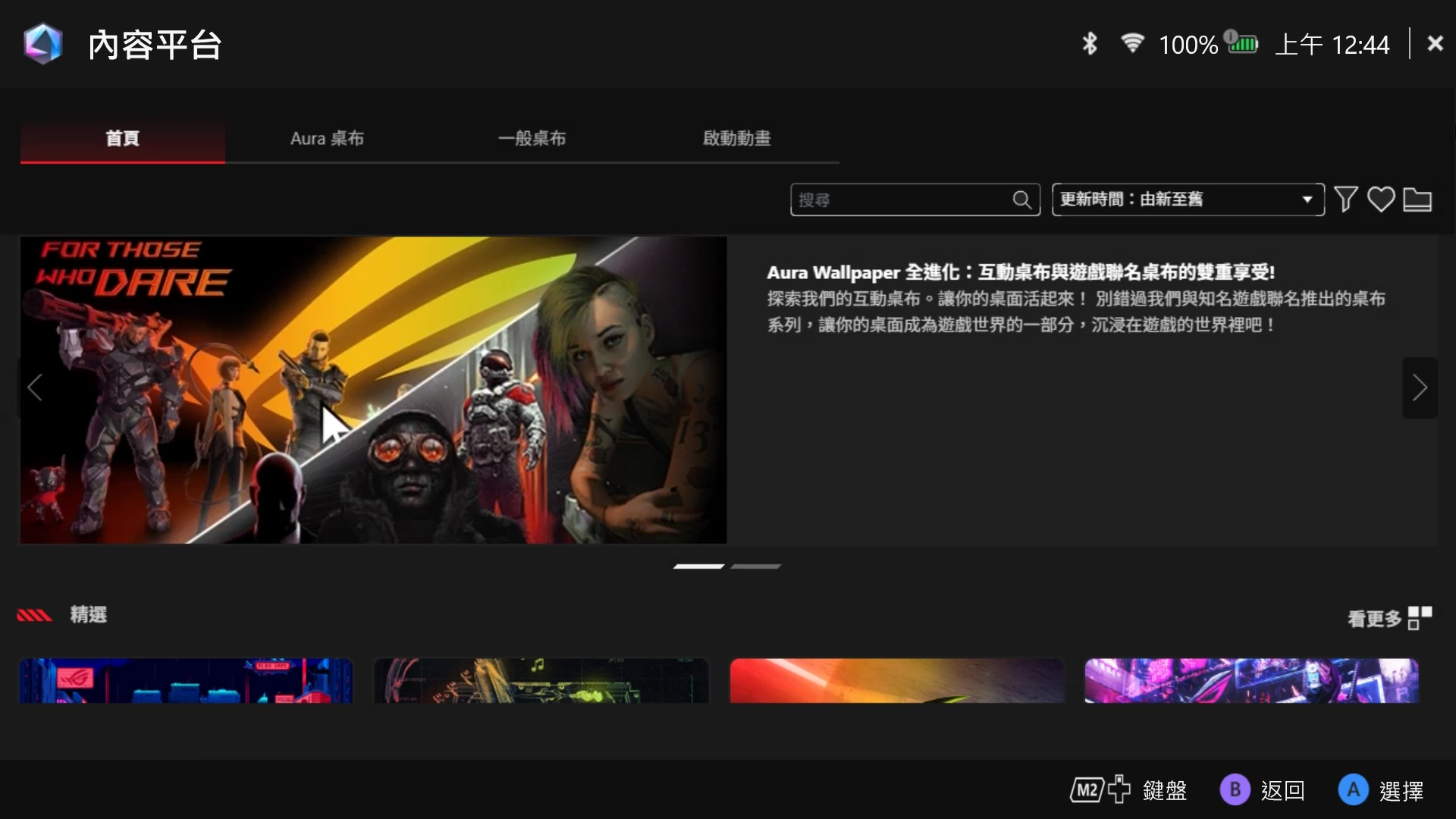 開機完成後,按壓 [Armoury Crate鍵] 即可開啟Armoury Crate SE應用程式,並進入首頁。