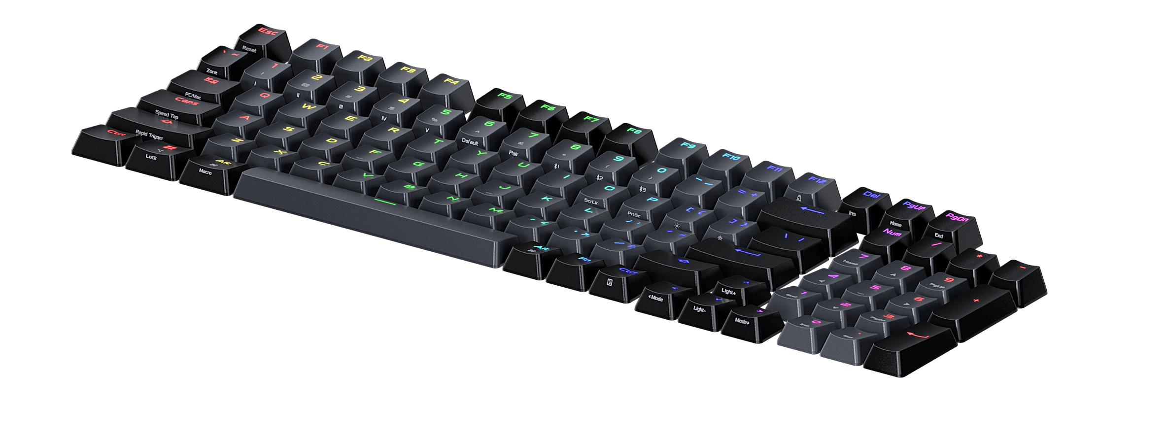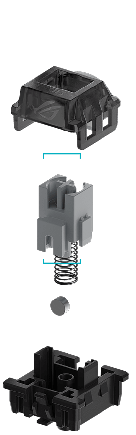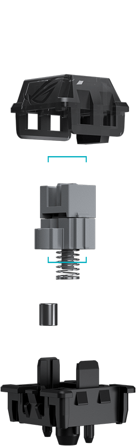 ROG PBT doubleshot keycaps provide a premium feel and offer long-lasting durability. Key design has been optimized with mid-height keycaps and a shorter stem to reduce key wobble, providing a more comfortable user experience.