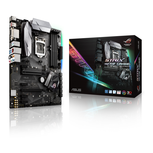 Intel LGA-1151 ATX H270 gaming motherboard with Aura Sync RGB LED, Intel Gigabit LAN, DDR4 2400MHz, dual M.2, SATA 6Gb/s, and USB 3.1 Type-C