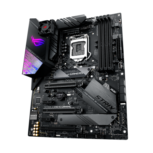 Intel Z390 LGA 1151 ATX gaming motherboard with Aura Sync RGB, 802.11ac Wi-Fi, DDR4 4266z+, dual M.2 with heatsinks, SATA 6Gbps, HDMI, and USB 3.1 Gen 2