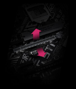 The distinctive sleek cuts across the ROG Strix heatsink are now accented with a futuristic cyber-text pattern, fusing multiple gaming cultures to create a unique identity for this generation. But it’s not all about arresting looks: the all-new ROG Strix motherboards exude material excellence, with a high-quality metal heatsink that adds a premium touch.