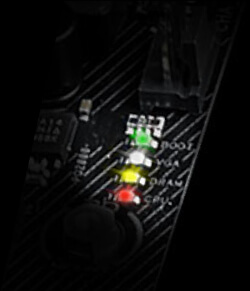 Onboard LEDs indicate power status as well as problems with the CPU, memory, graphics card or boot device ― to enable quick diagnosis, if needed.