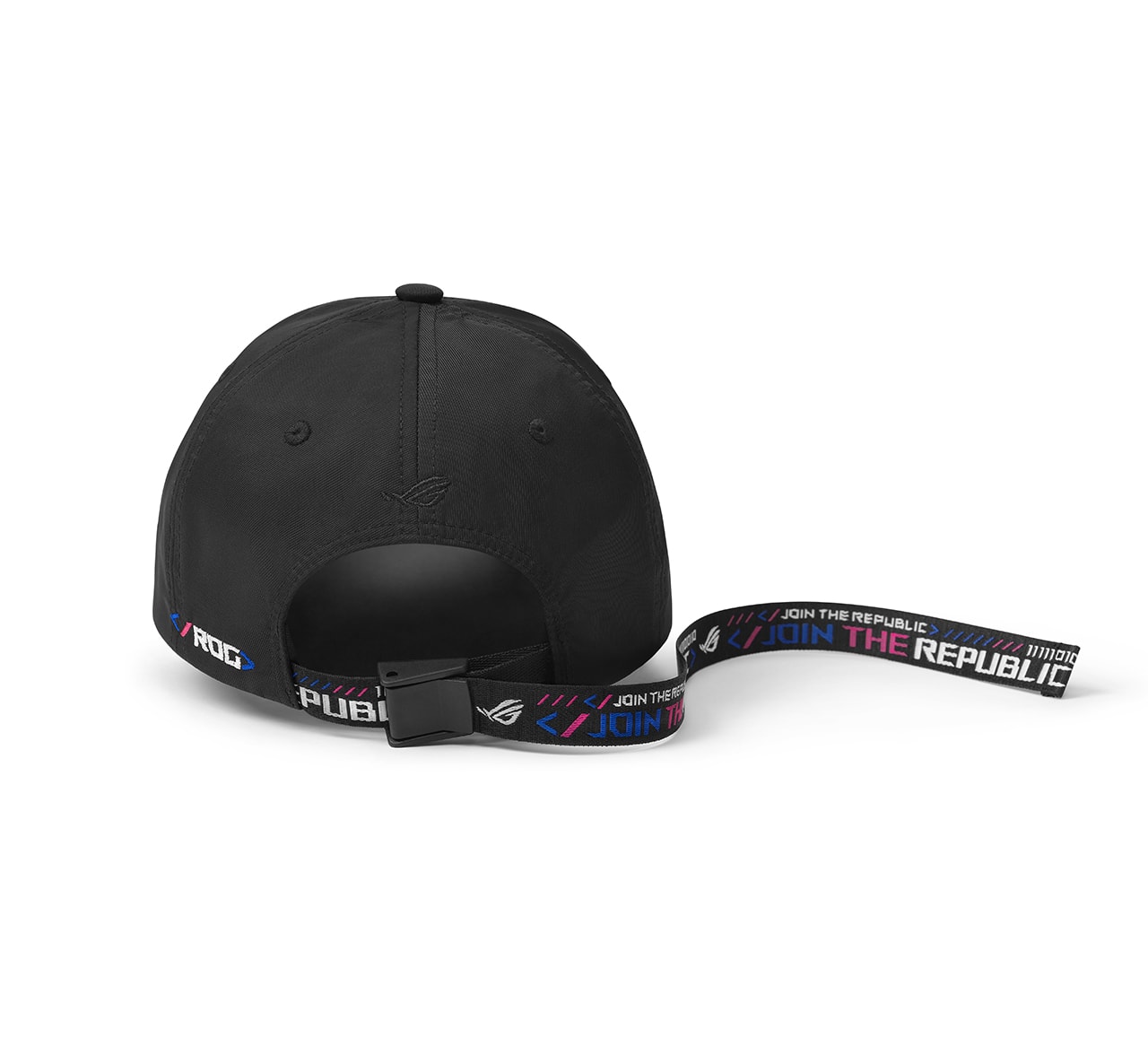Stay classic in style with the ROG SLASH Classic Baseball Cap's iconic design accents, water-repellent material, and extra-long strap that tucks away for a clean look.