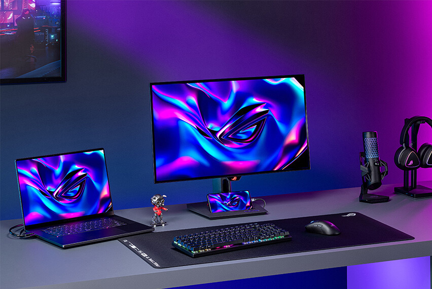 Monitory ROG OLED ponúkajú celý rad možností pripojenia*, vrátane najnovšieho DisplayPort™ 2.1, HDMI® 2.1, USB Type-C® (s Power Delivery) a USB hubu, čo zaisťuje výnimočnú kvalitu obrazu a bezproblémovú kompatibilitu so širokou škálou zariadení.