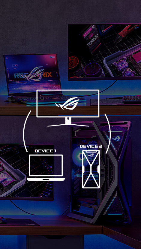 Vybrané monitory ROG OLED ponúkajú súťažným hráčom možnosť voľby pomeru strán*. Vďaka tomu si môžete vybrať medzi pohlcujúcim režimom cez celú obrazovku a esport režimom, ktorý simuluje hranie na 24,5 palcovom alebo 27 palcovom displeji.