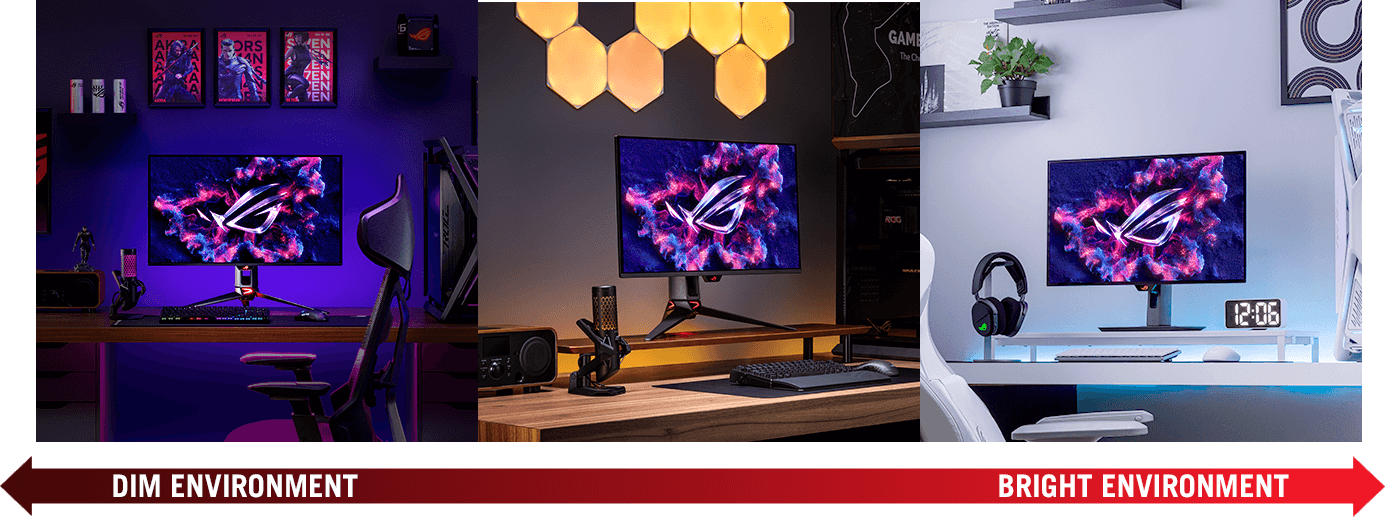 Jas je kľúčovým prvkom výkonu OLED a ROG sa snaží o neustále zlepšovanie a stále posúva hranice maximálneho jasu svojich OLED monitorov, čím zaisťuje úžasný obraz v rôznych svetelných podmienkach.