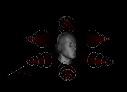 *Funkcia prenosu zvuku HRTF je zvukový algoritmus odvodený od zvukových dát zaznamenaných pomocou figuríny. Testovacie tóny sú prehrávané zo sférickej mriežky okolo hlavy figuríny a analyzujú sa jemné zmeny v zvukoch, ktoré pochádzajú z rôznych smerov. Výsledky sú kombinované do algoritmu, ktorý umožňuje aplikácii Sonic Studio spracovávať virtuálne priestorové zvuky tak, že sú skutočne verné.