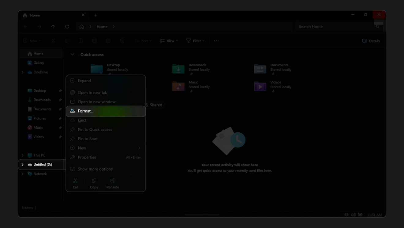 NOTE: If you missed the pop up, you also format your card in Windows desktop mode.