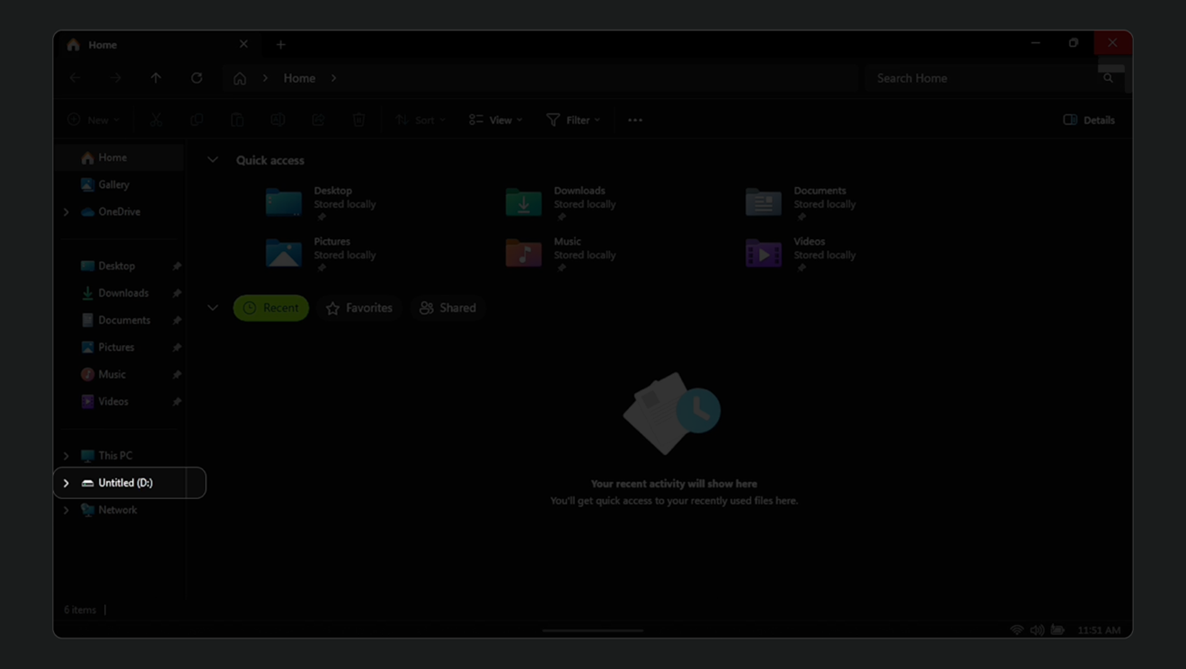 5. Press and hold on the microSD card listed in the sidebar (e.g. “Untitled (D:)”).