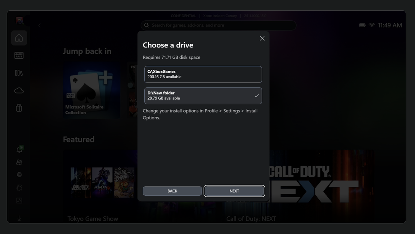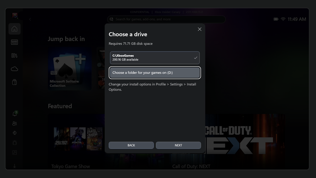 4. Games can now be selected to install on your microSD card or on locally on your device’s internal SSD.