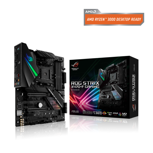 AMD X470 ATX Gaming motherboard with M.2 heatsink, Aura Sync RGB LED, DDR4 3600MHz, 802.11ac Wi-Fi, dual M.2, SATA 6Gb/s, and USB 3.1 Gen 2