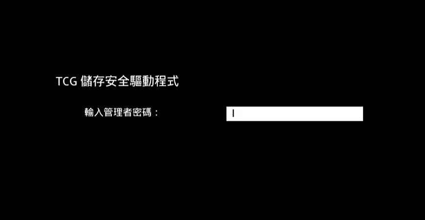 註:僅部分型號配置了HDD密碼的設定。 - OPAL密碼:OPAL是TCG(Trusted Computing Group)制定的硬碟與SSD儲存安全加密規範。若您為裝置設定了OPAL密碼,在開機或進入BIOS設定時,系統將會要求輸入「TCG 儲存安全驅動程式密碼」。只有在正確輸入密碼後,硬碟才會解鎖,並允許裝置正常啟動或存取硬碟中的資料。