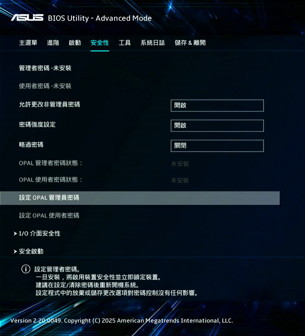 註:僅部分型號配置了OPAL密碼的設定。