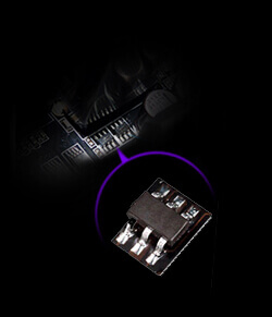 - Високоякісна елементна база та комплекс рішень для комп’ютерних ентузіастів, зокрема попередньо встановлена екранована панель і посилені графічні слоти (технологія SafeSlot)