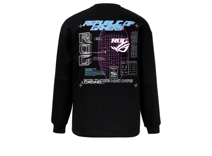 The ROG DigiPixel T-shirt is made of 100% cotton for unmatched comfort. It features a reflective, sci-fi-inspired ROG graphic print on the back and an embroidered logo on the front. A durable crew neck and split-hem design make this tee a stylish choice for gamers.