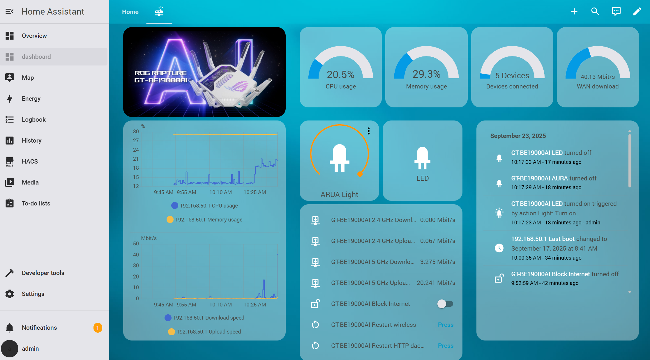 With Home Assistant set up, the next step is integrating your ASUS router information. Follow the Integrate AI Router Info in Home Assistant guide to learn how to connect your router to Home Assistant, build a custom network dashboard, and even use HACS to expand automation features.