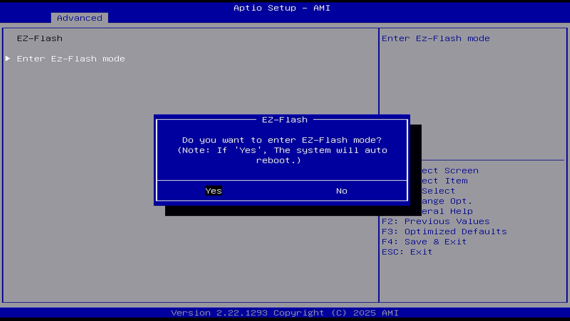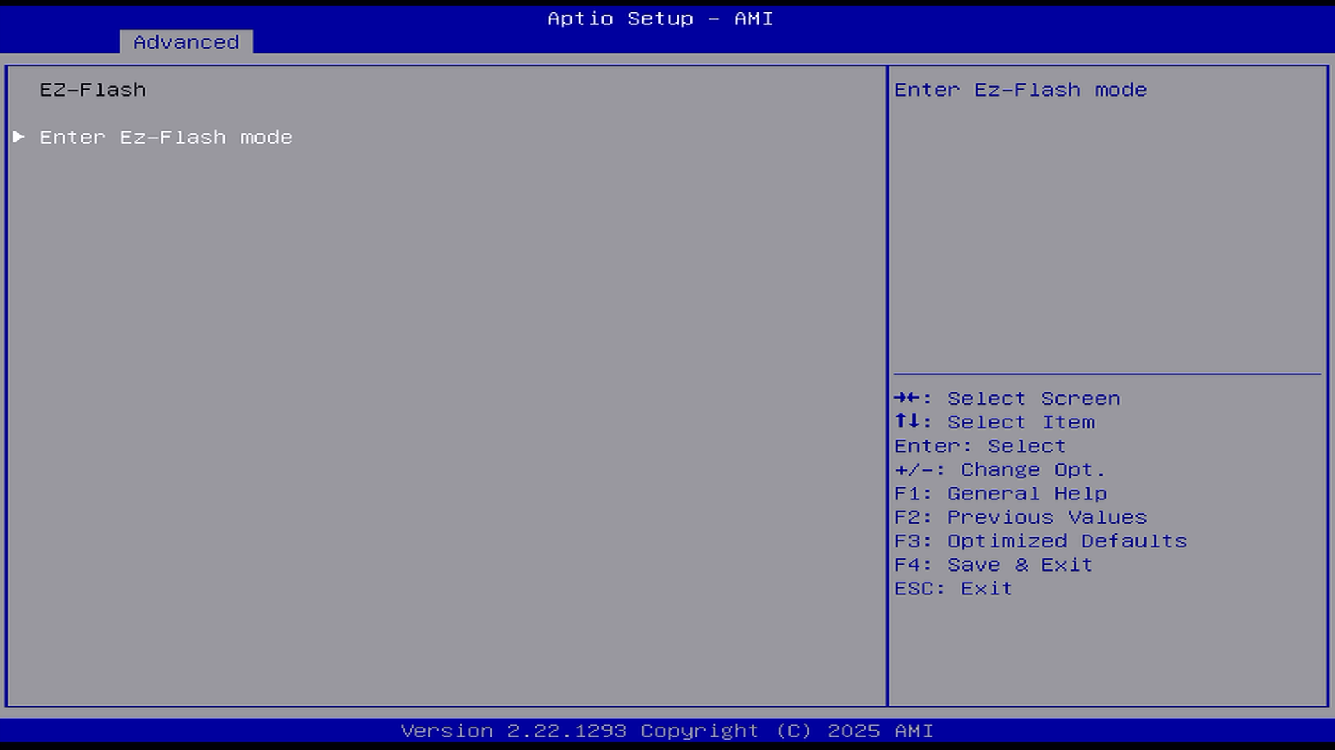 5. Go to Advanced menu > EZ-FLASH > Enter EZ-Flash mode.